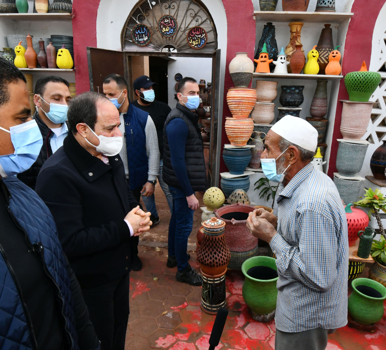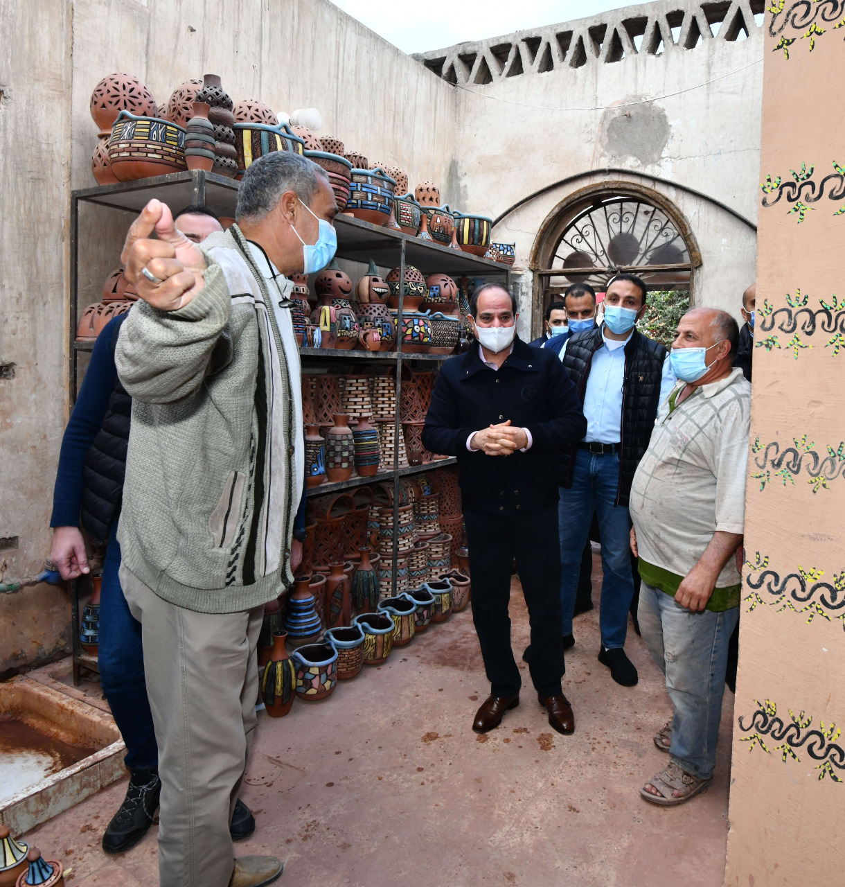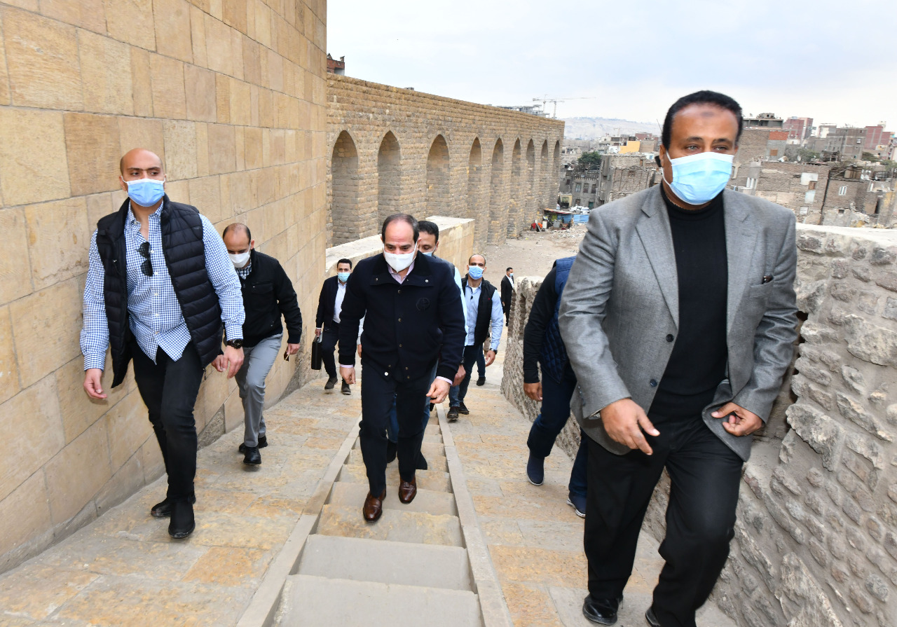 وقال السفير بسام راضي المتحدث باسم رئاسة الجمهورية بأن جولة الرئيس شملت تطوير منطقتي مصر القديمة وسور مجري العيون الذي يمتد من منطقة فم الخليج إلي قلعة صلاح الدين لمدها بالماء، وقد توقف الرئيس لتبادل التحية مع المواطنين والعاملين في ورش الفخار بمصر القديمة حيث أستمع إلي طلباتهم واحتياجاتهم.