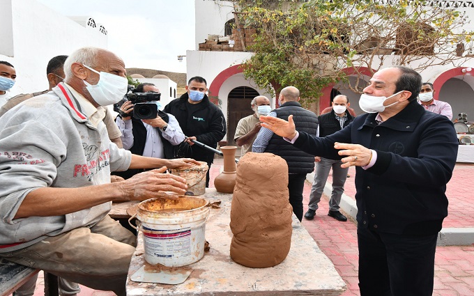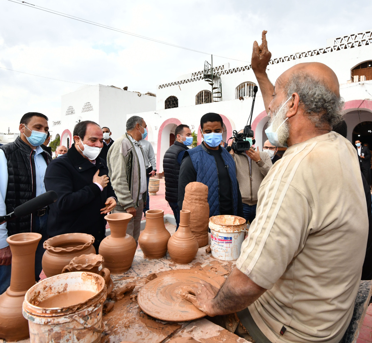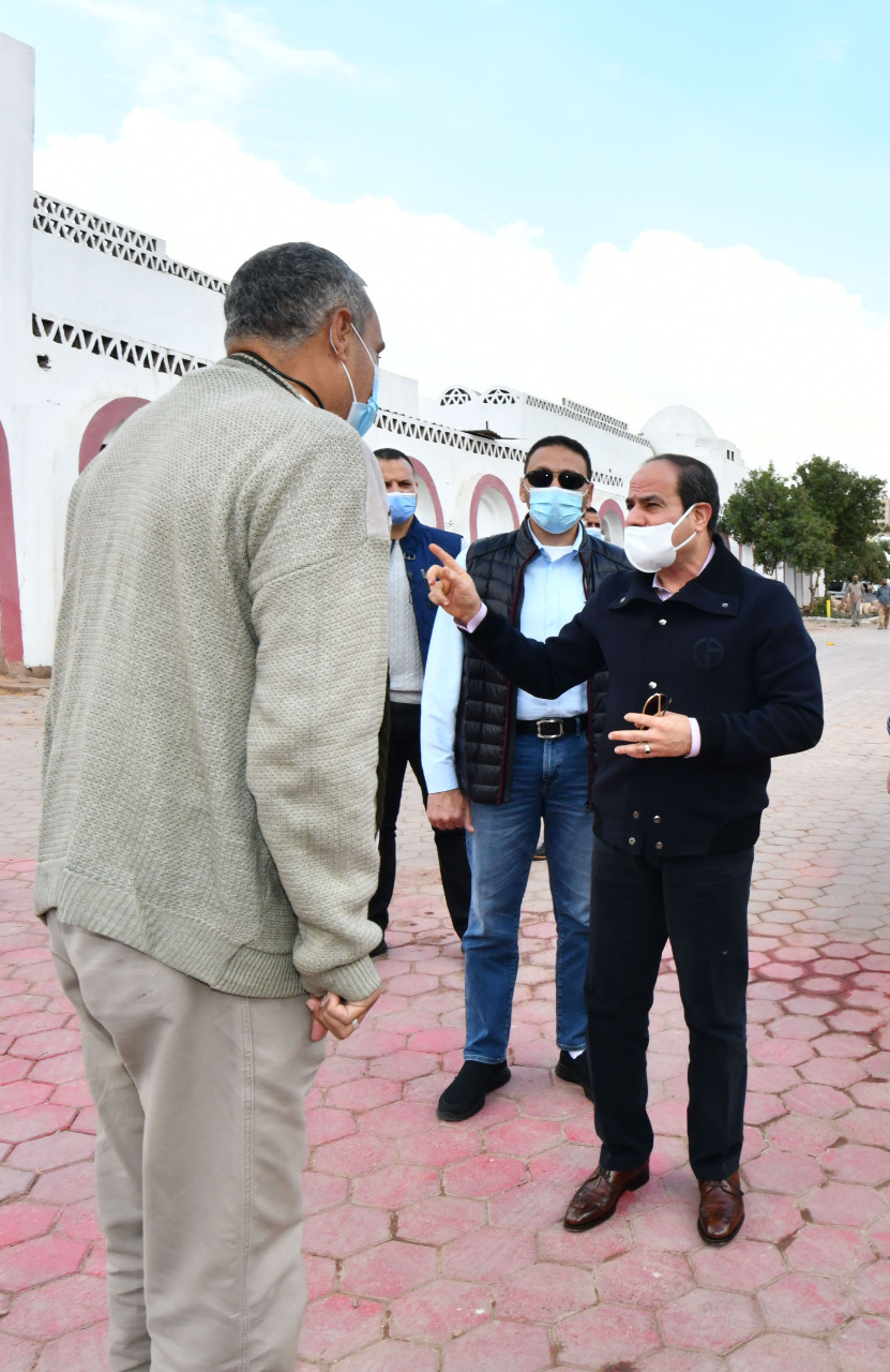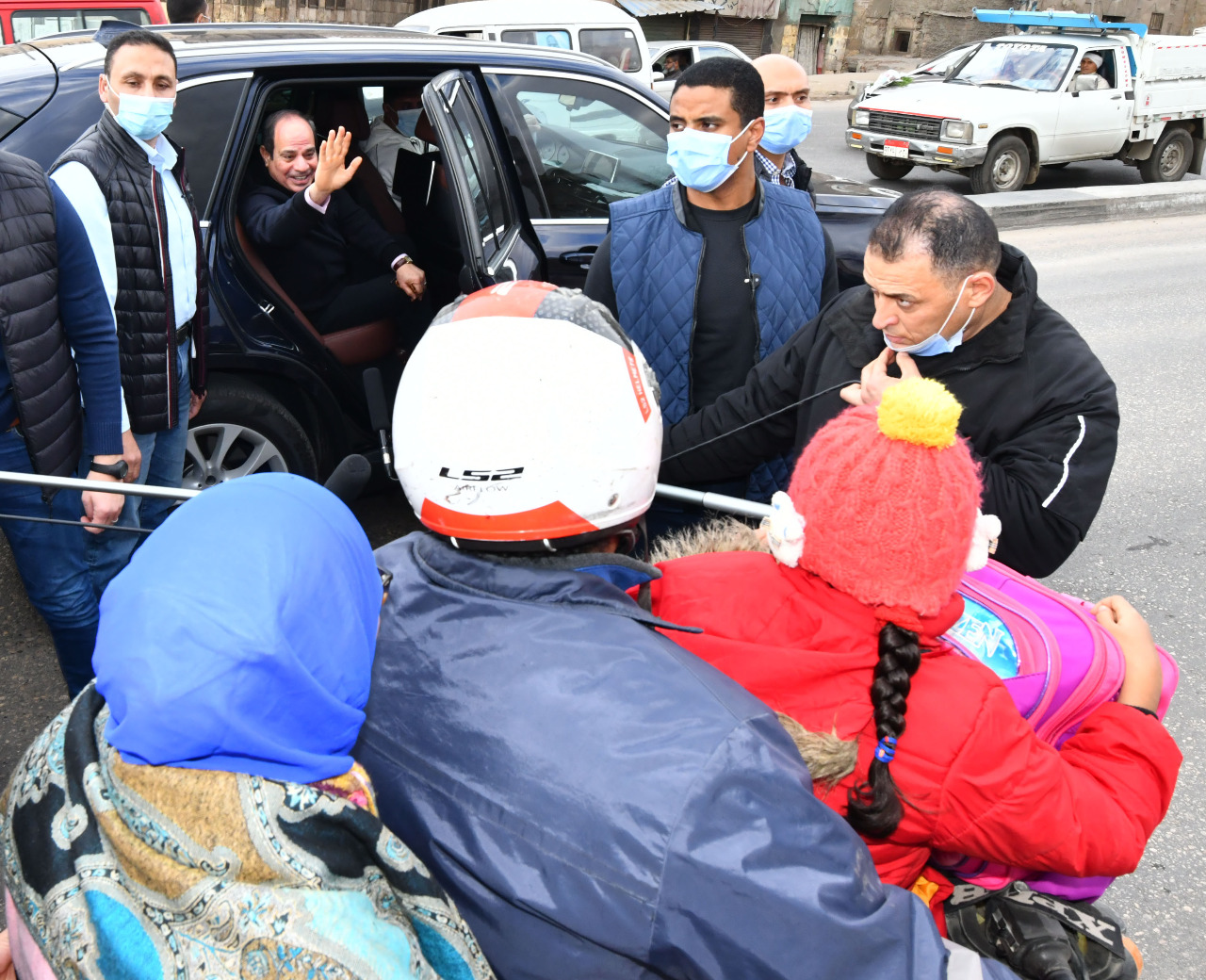 وقال السفير بسام راضي المتحدث باسم رئاسة الجمهورية بأن جولة الرئيس شملت تطوير منطقتي مصر القديمة وسور مجري العيون الذي يمتد من منطقة فم الخليج إلي قلعة صلاح الدين لمدها بالماء، وقد توقف الرئيس لتبادل التحية مع المواطنين والعاملين في ورش الفخار بمصر القديمة حيث أستمع إلي طلباتهم واحتياجاتهم.