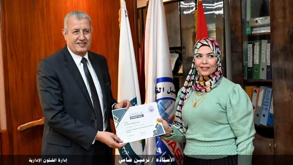 كما قام المحاسب أحمد عبدالمطلب بتوزيع الشهادات على الموظفين الحاصلين على شهادة اجتياز متمنيا لهم دوام النجاح والترقي وأشاد بالاقبال على تعلم