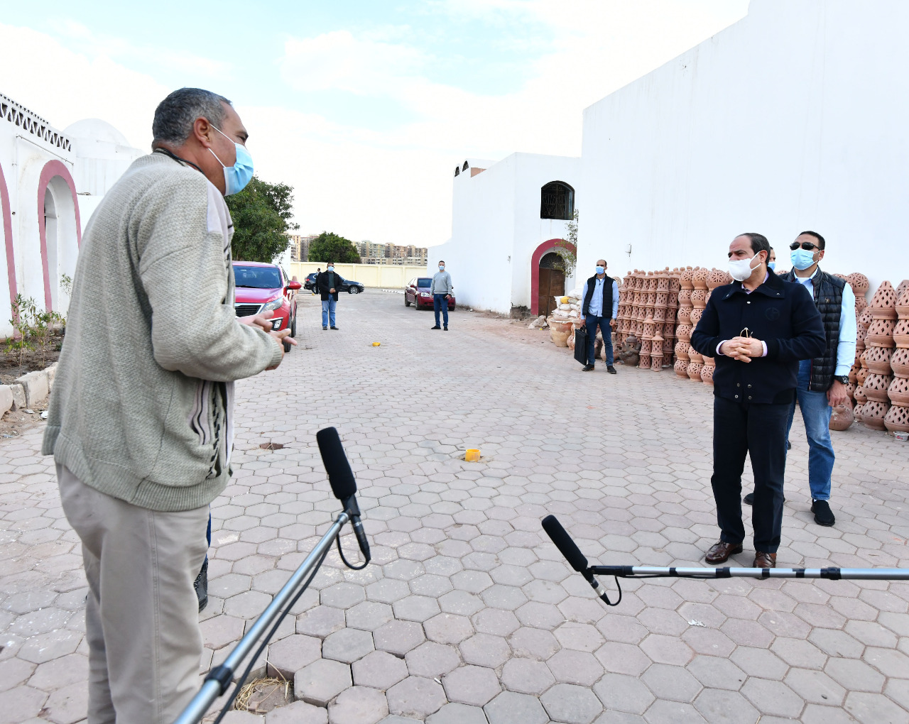 وقال السفير بسام راضي المتحدث باسم رئاسة الجمهورية إن جولة الرئيس شملت تطوير منطقتي مصر القديمة وسور مجري العيون الذي يمتد من منطقة فم الخليج إلي قلعة صلاح الدين لمدها بالماء، وقد توقف الرئيس لتبادل التحية مع المواطنين والعاملين في ورش الفخار بمصر القديمة حيث استمع إلي طلباتهم واحتياجاتهم.