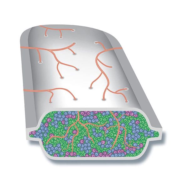 واستطرد أسامة في حل المشكلة الثانية للتطور العلاجي فقال: "في المقابل قررت شركة ڤياسيت أن تحفظ الخلايا في جهاز صغير بحجم كارت الإئتمان وبه ثقوب تنمو فيها الشعيرات الدموية لتغذي الخلايا بالاكسجين والغذاء لتنمو وتعيش لأطول فترة ممكنة، ولكن يجب معها أيضًا إعطاء الأدوية المثبطة للمناعة لأن الأجسام المناعية تدخل أيضًا من هذه الثقوب".