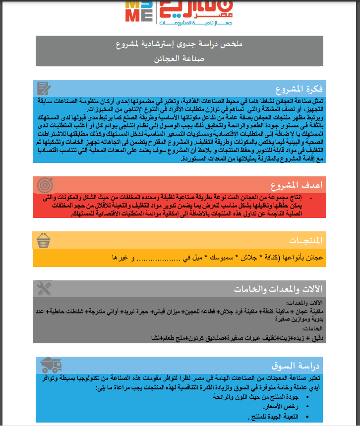 وتستعرض "فيتو" كافة التفاصيل المتعلقة لدراسة دراسة جدوى استرشادية لمشروع صناعه العجائن، والتى أعدها جهاز تنمية المشروعات الصغيرة والمتوسطة؛ حيث يهدف المشروع الى توفير فرص عمل مناسبة واستغلال رواج هذه التجارة لانتشار كثيرة منها داخل السوق المصرية.