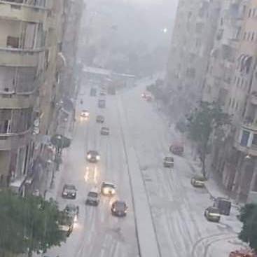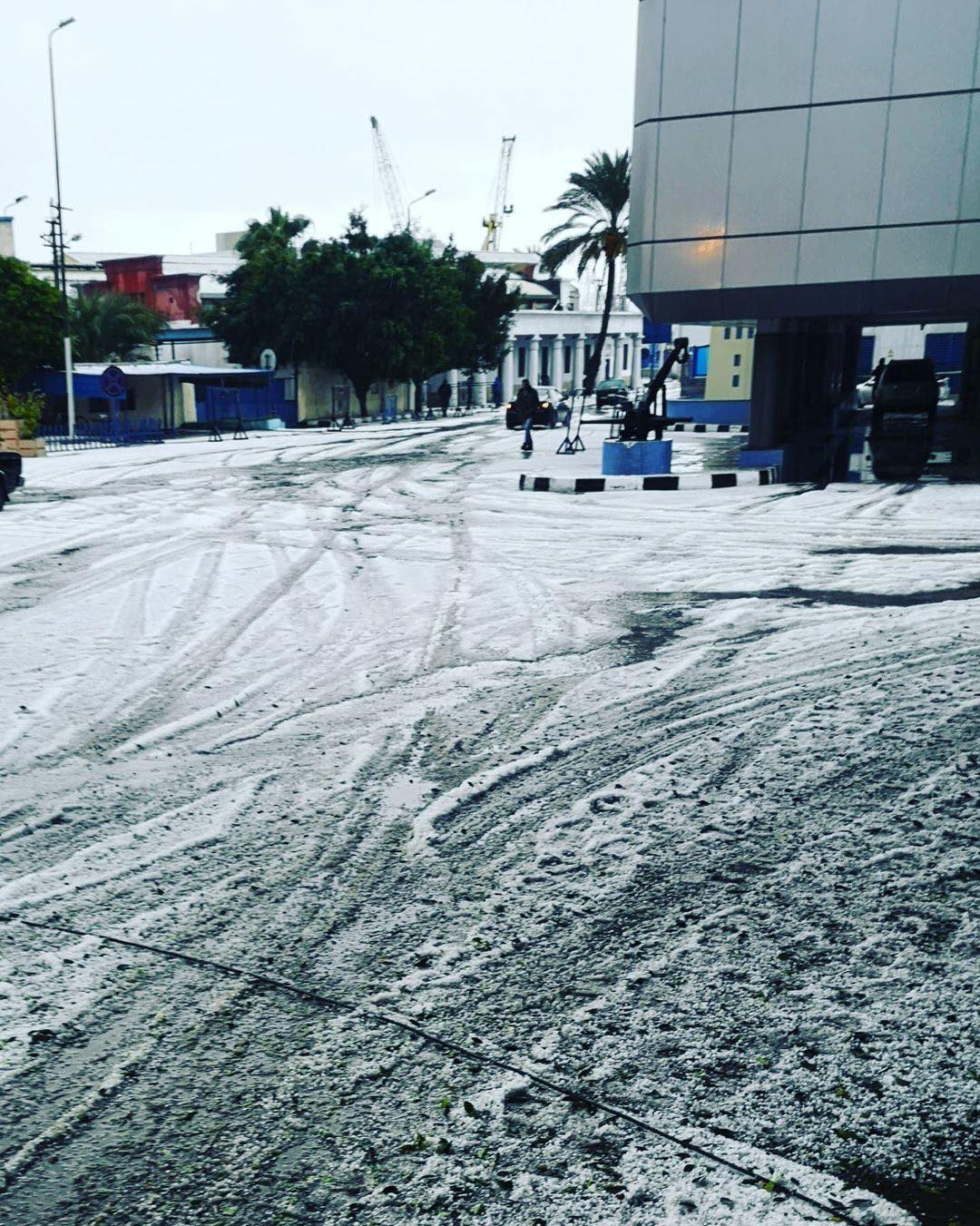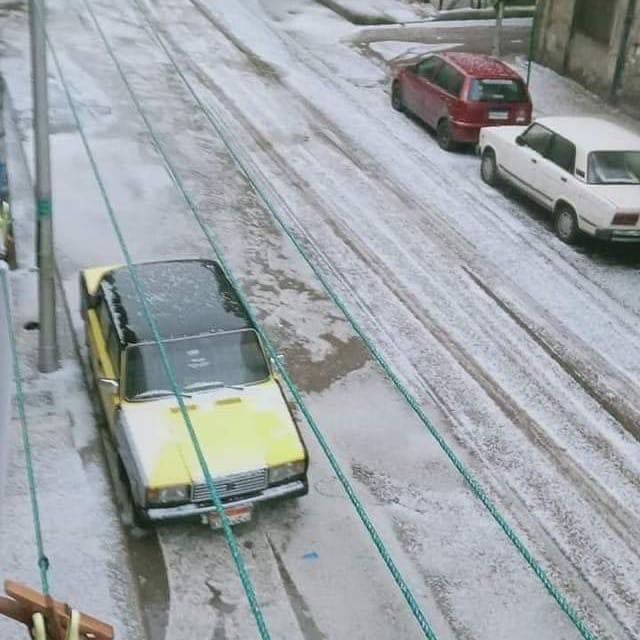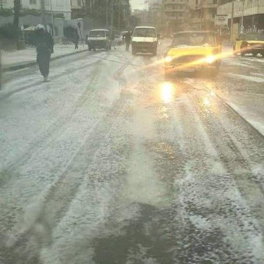 وقال محمد عبد السلام "بوادر التغير المناخي بدأت في الظهور.. شوارع الإسكندرية تكتسي بالثلوج البيضاء بعد تساقط الثلوج عليها صباح اليوم"