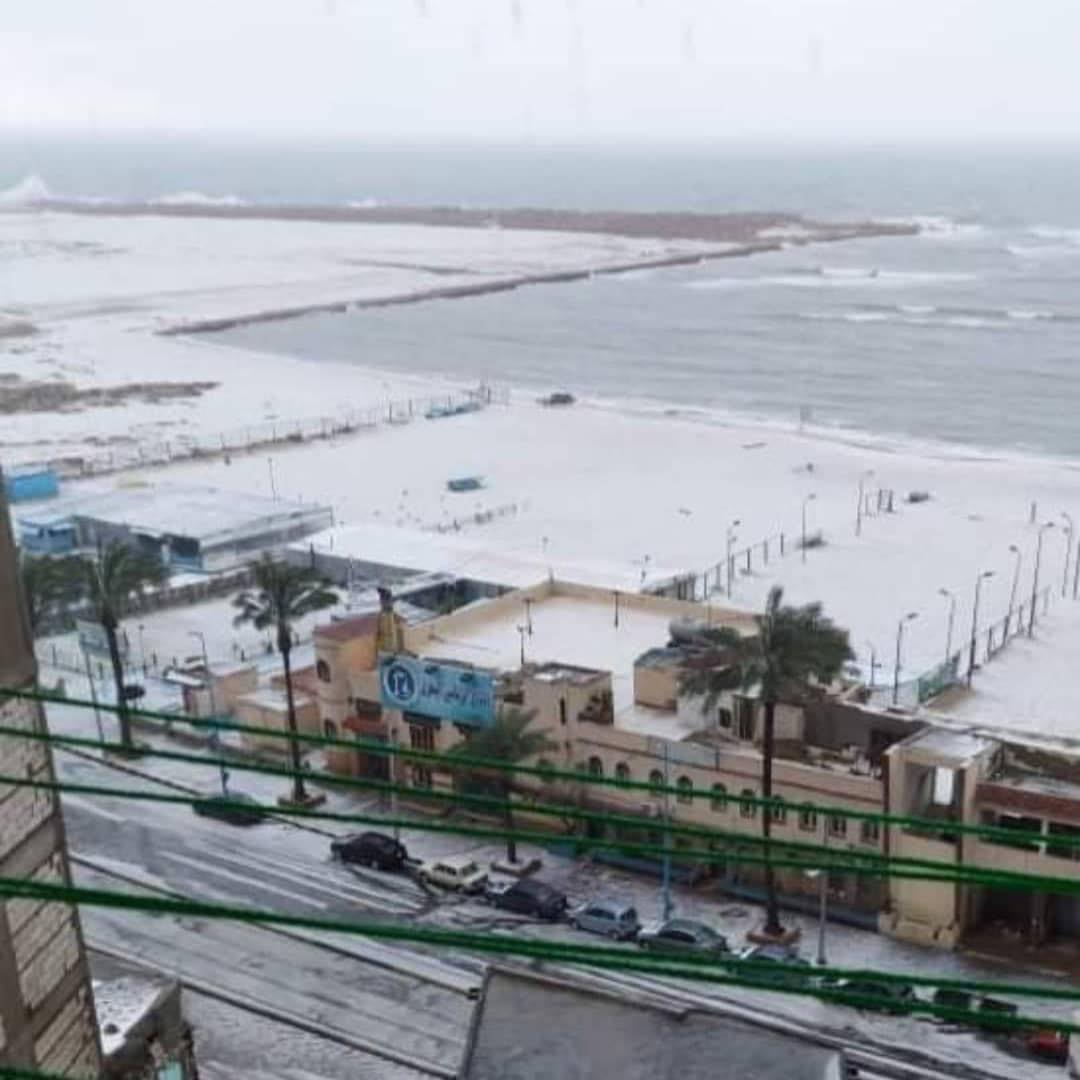 رصدت كاميرات نشطاء مواقع التواصل الاجتماعي 18 صورة للثلوج التي غطت شوارع وميادين الإسكندرية، وظهرت بكثافة على شاطئ البحر في الإسكندرية، حتى أن البعض اعتقد أن البحر تجمد من كثافة الثلوج.