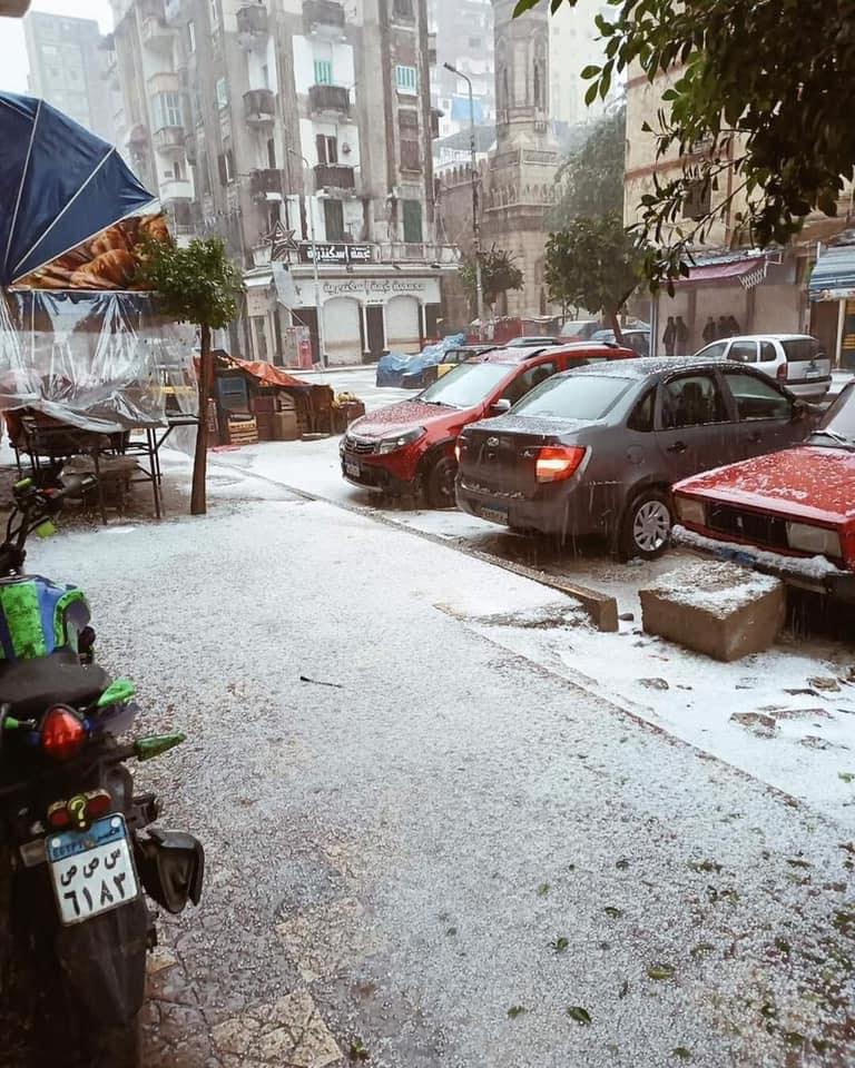 ورد تامر المصري قائلًا: "شوارع عروس البحر المتوسط اكتست باللون الأبيض، موجة من الصقيع لم تشهدها مصر منذ سنوات".