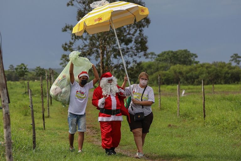 في إطار مبادرة قامت بها جمعية "أميجوس دو باباي نويل" (أصدقاء سانتا كلوز)، يلتقي بابا نويل أفراد العائلات الفقيرة التي تعيش على ضفاف النهر، على بعد 24 كيلومترًا من ماناوس.