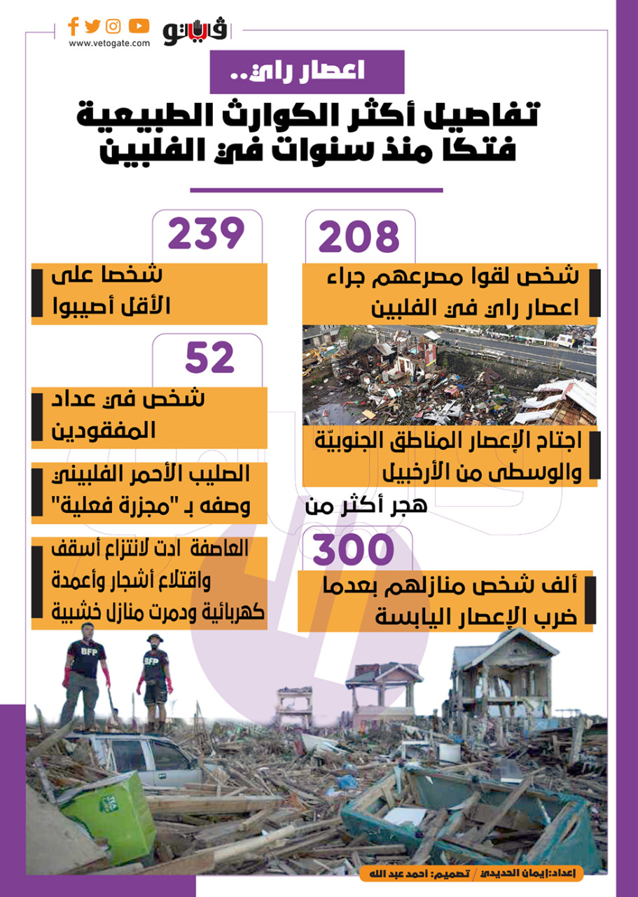 اعصار راي.. تفاصيل أكثر الكوارث الطبيعية فتكا منذ سنوات في الفلبين|انفوجراف الإثنين 20/ديسمبر/2021 - 03:07 م 12/20/2021 3:07:47 PM اثار اعصارراي إيمان الحديدى شارك طباعة 18 حجم الخط شارك طباعة الفلبين إعصار الصليب الأحمر عاصفة الكوارث الطبيعية اعصار راي