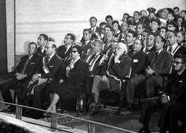 في الصفوف الأولى جلست السيدة أم كلثوم والفنان محمد عبدالوهاب والفنان يوسف وهبي، والذين حصلوا على أوسمة استحقاق الفنانين بعد تكريم العلماء في الاحتفالية من "ناصر" ومعهم الفنانين عبدالحليم حافظ وفريد الأطرش.