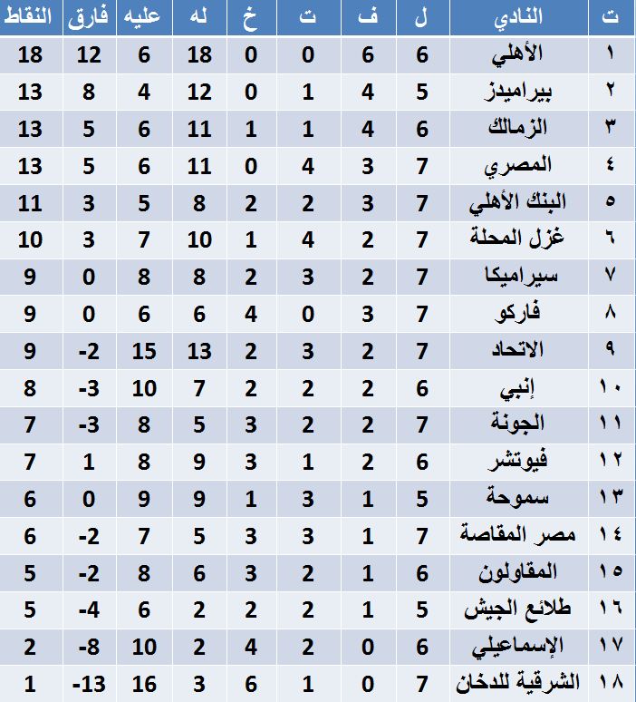 1- الأهلي 18 نقطة