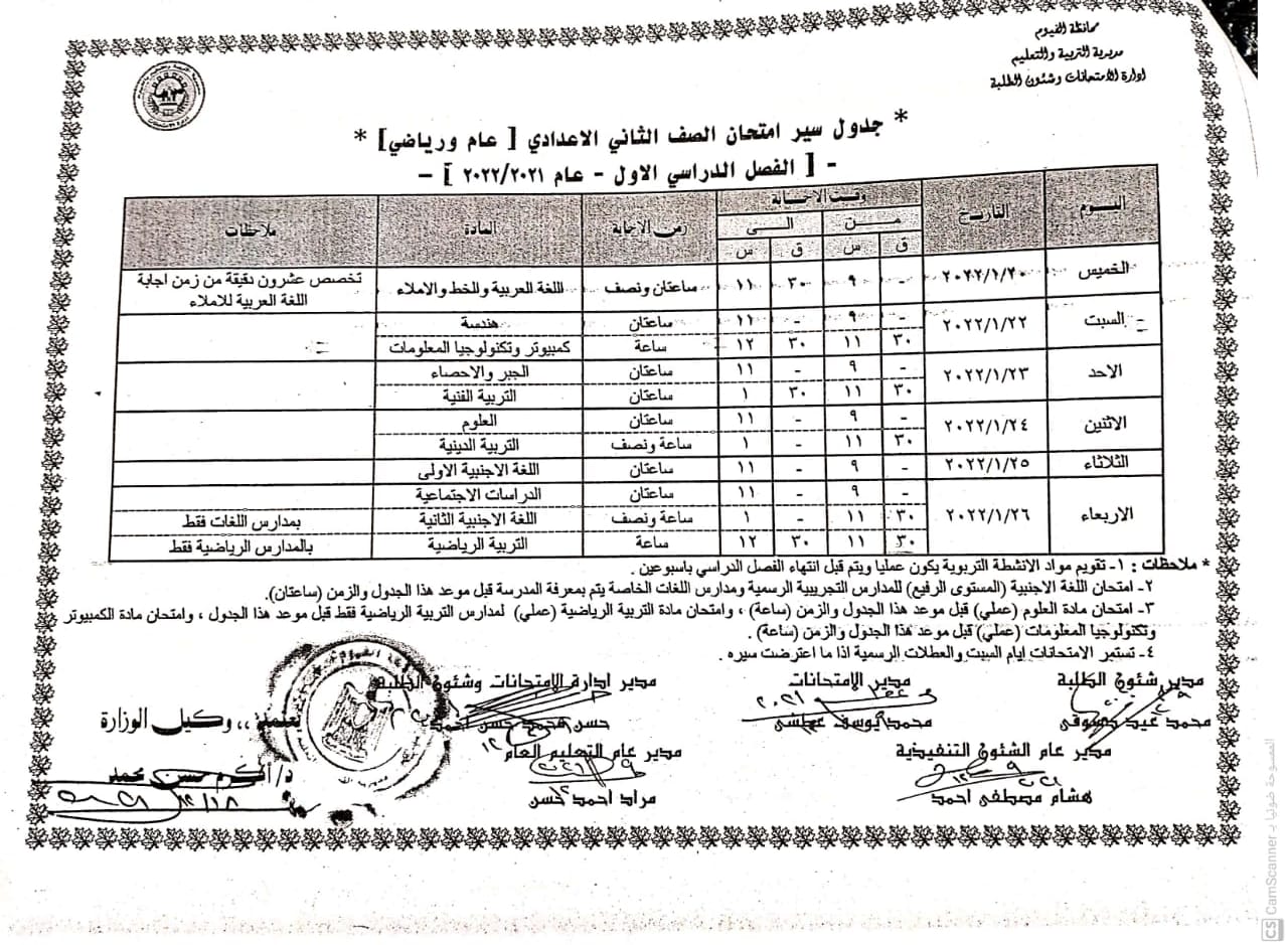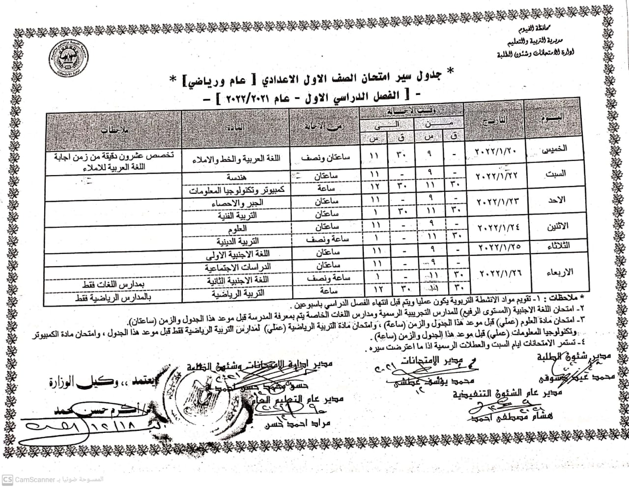اعتماد جداول امتحانات الفصل الدراسي الأول في الفيوم