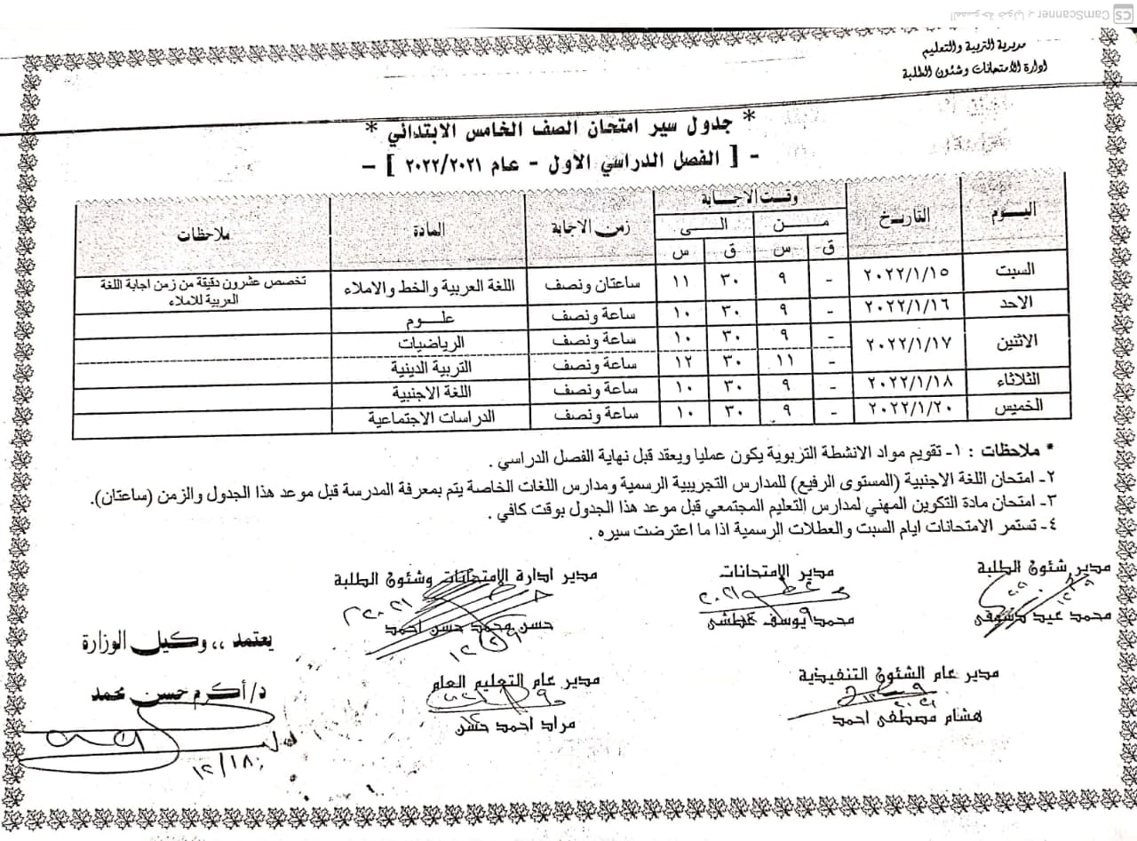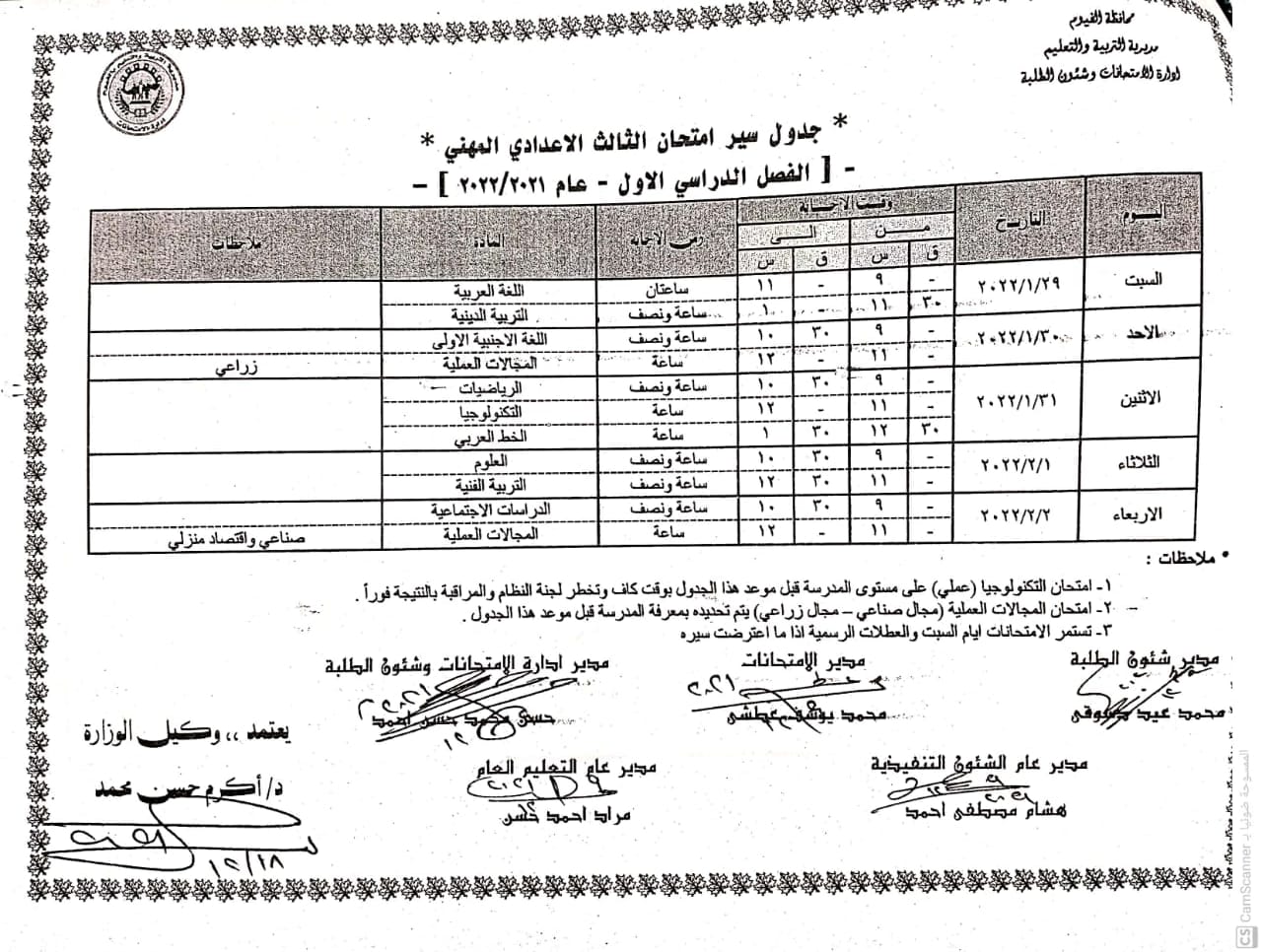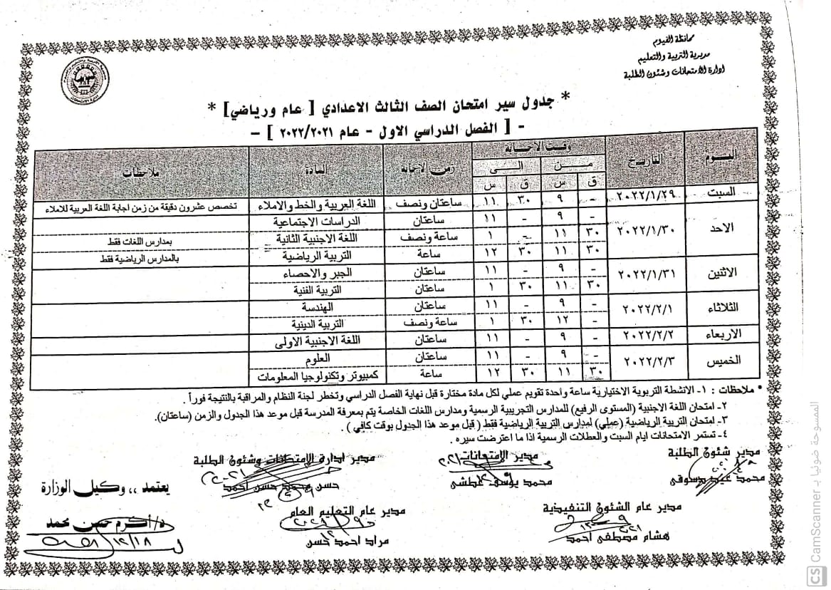 وتعقد امتحانات نهاية العام لصفوف النقل والشهادة الإعدادية يوم السبت ٧/ ٥/ ٢٠٢٢ وامتحانات شهادة إتمام الثانوية العامة يوم السبت ١١/ ٦/ ٢٠٢٢ والامتحانات النظرية للدبلومات الفنية يوم السبت ٢١/ ٥/ ٢٠٢٢ أما الامتحانات العملية يوم السبت ١١/ ٦/ ٢٠٢٢.