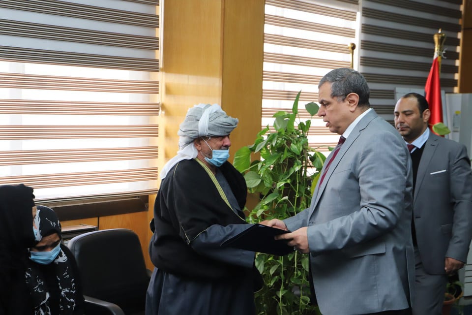 سلم محمد سعفان وزير القوى العاملة، شيكات بقيمة بوليصة التأمين التكافلي ضد الحوادث الشخصية التي تغطي الوفاة أو العجز الكلي المستديم أو الجزئي، وذلك لأسر 3 عمال متوفين، وصرف مصاريف علاج لـ 3 حالات عجز جزئي نتيجة إصابة أثناء العمل، وذلك في إطار مبادرة حياة كريمة" التي أطلقها الرئيس عبد الفتاح السيسي، لرعاية الفئات الأكثر احتياجًا.