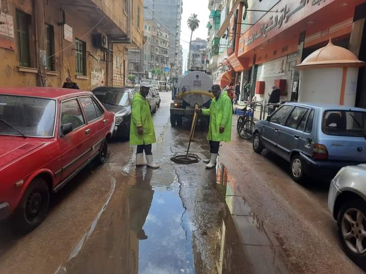 انتشار 100 سيارة و40 بدالة لشفط مياه الأمطار في شوارع الإسكندرية