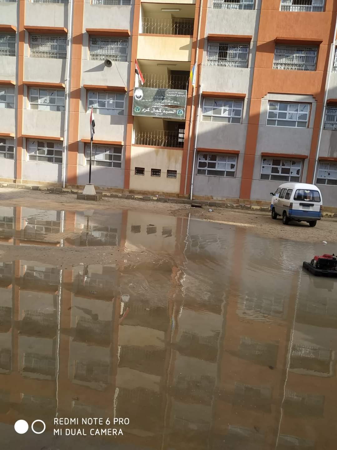 تجمع مياه الأمطار داخل المدارس والمستشفيات