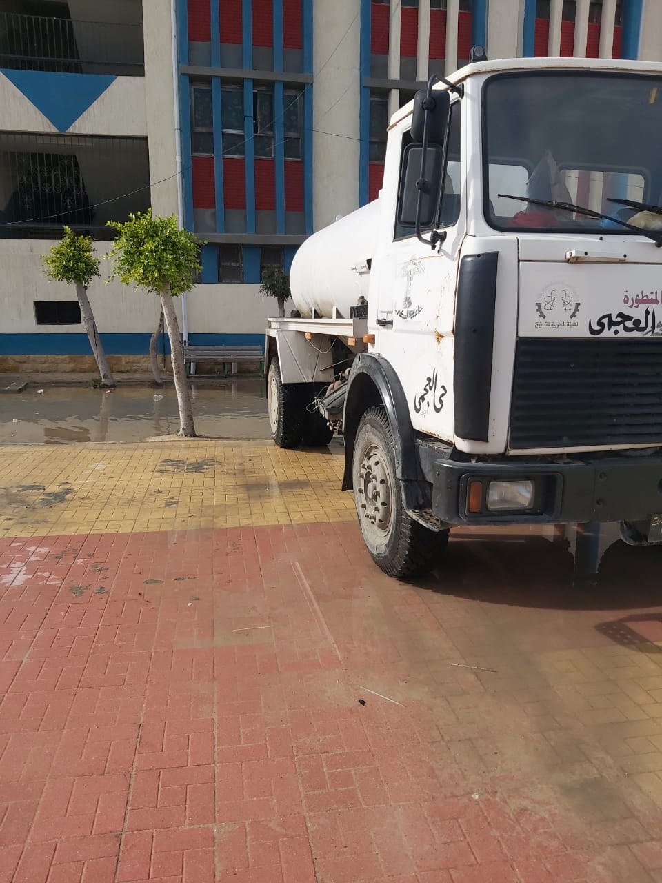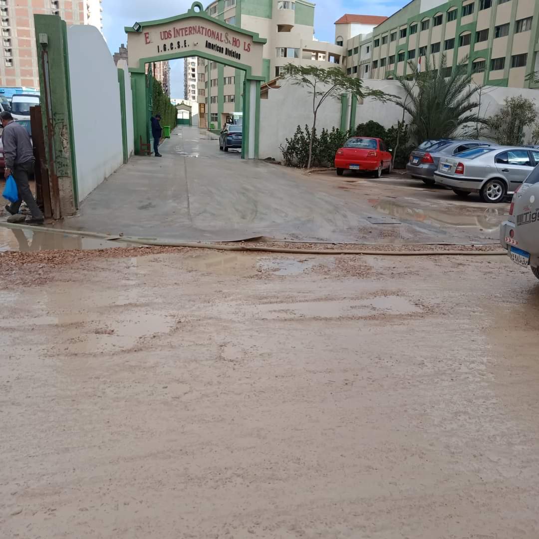 وشهدت عدد من المدارس والمستشفيات تجمعات مياه الأمطار فيها، ويجري التعامل معها بواسطة سيارات رفع المياه التابعة لشركة الصرف الصحي، وهي: مدرسة حسن صبحي الثانوية بنات بمنطقة العجمي، مدرسة شدوان الثانوية بنين محرم بك، مدرسة المشير أحمد البدوي الثانوية محرم بك، مدرسة أحمد طلعت الابتدائية منطقة وسط، مدارس القدس الرأس السوداء، مدرسه السيد كمال كريم الابتدائية أبيس الثانية، مدرسة نجيب الكيلاني الهانوفيل، مدرسة أشرف الخوجة سموحة، بخلاف تجمع مياه بداخل مستشفي الشاطبي نظرًا لأن أغلب أفنية تلك المدارس ترابية وتوجهت معدات الشركة لنزح تجمعات المياه بداخلها فور الإبلاغ.