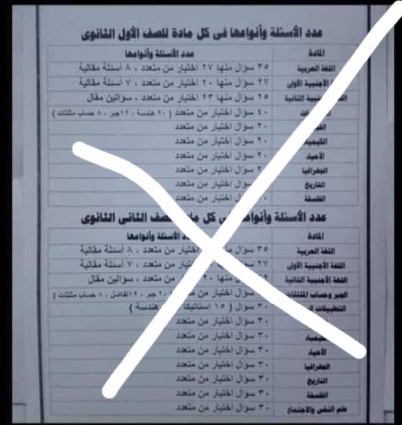 نفي الدكتور طارق شوقي وزير التربية والتعليم والتعليم الفني، صحة الجداول المتداولة عبر مواقع التواصل الاجتماعي المختلفة والتي تتضمن عددا من أسئلة امتحان كل مادة في الصفين الأول والثاني الثانوي.