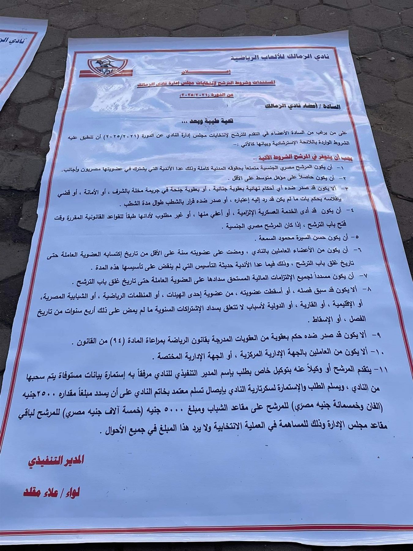 الزمالك ينشر 11 شرطا يجب توافرها في المرشحين وفقا للائحة الاسترشادية