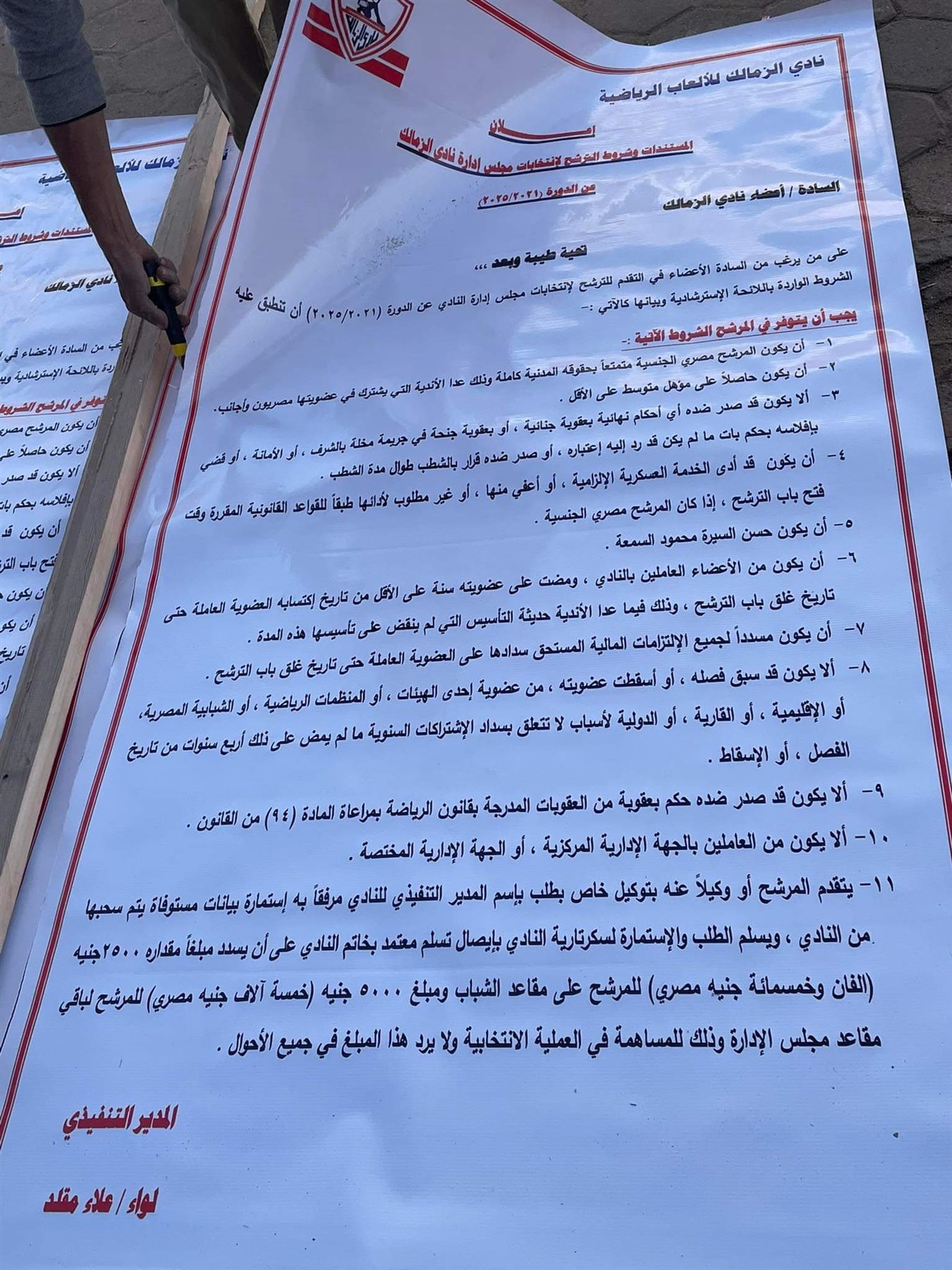 وقام مسئولو الزمالك بتعليق البانرات بجوار المكان المخصص لتلقي طلبات المرشحين لانتخابات الزمالك.