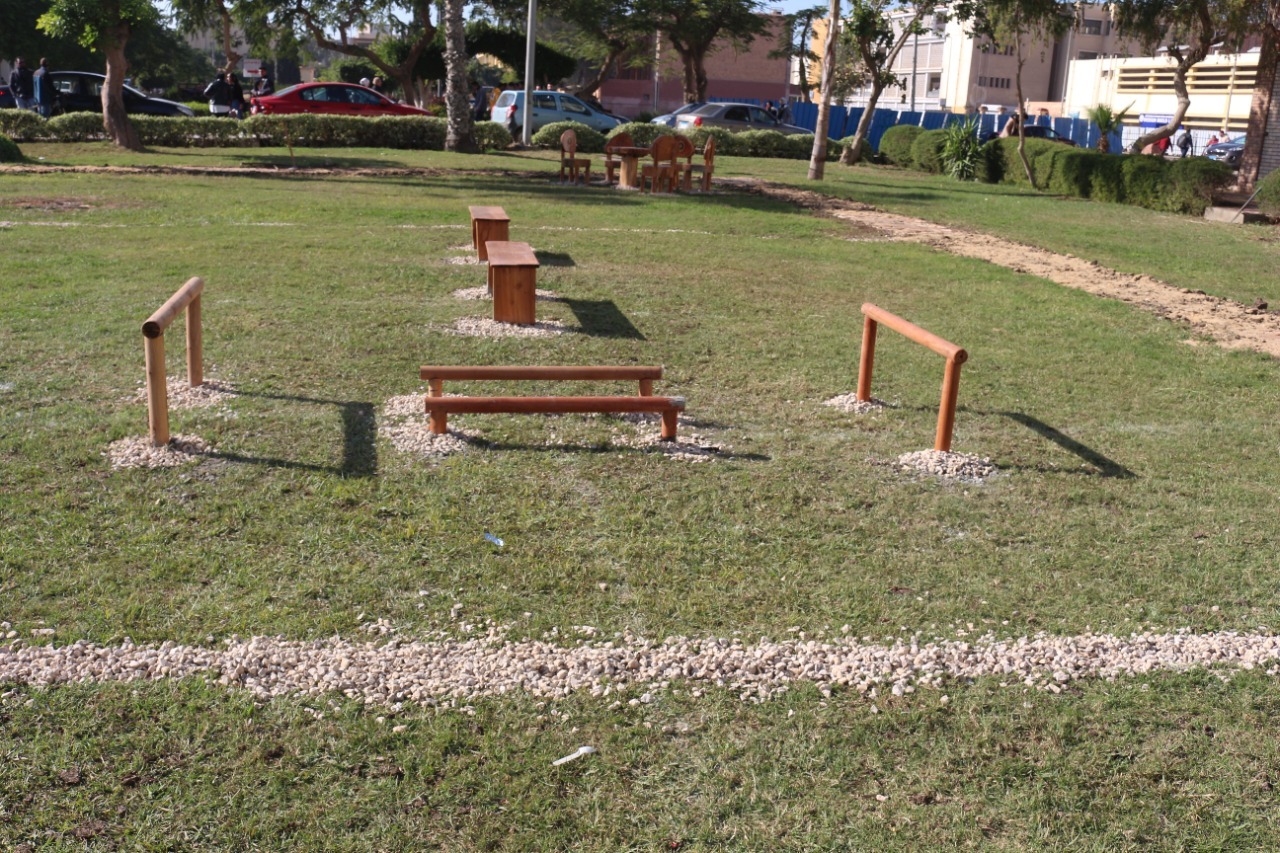 وتقع الساحة بالحديقة خلف مركز التدريب الرقمي (الحساب العلمي) وتشمل عدد من المعدات والآلات الرياضية التي تم تصنيعها داخل ورش كلية الزراعة والقرية الأوليمبية.