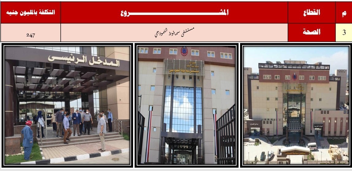 _ يمتلك مستشفى سمالوط النموذجي معملا ومكتبة، وقاعة للاجتماعات بتكلفة 247.787 مليون جنيه، و70 مليون جنيه للتجهيزات.