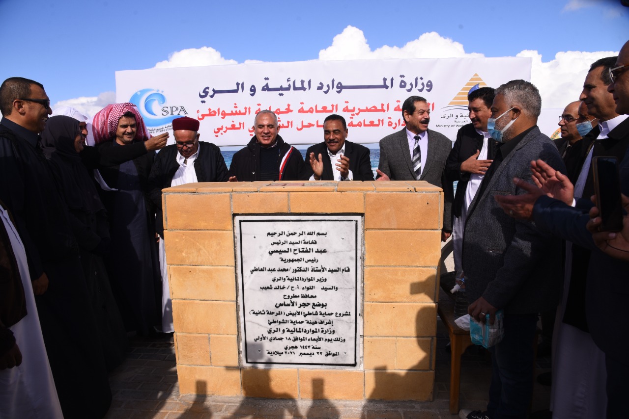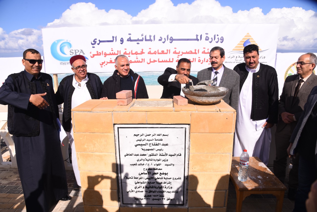 وزير الري يضع حجر أساس المرحلة الثانية لمشروع حماية شاطئ الأبيض بمطروح| صور