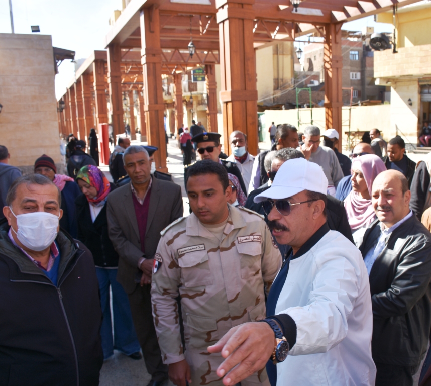 وفى نفس الجولة تفقد اللواء أشرف عطية السوق السياحى بعد الإنتهاء من تطوير 3 مراحل من إجمالي 2400 متر وبمتوسط عرض 11 متر حيث ضمت الأعمال تجديد وجهات المحلات عن طريق تجليدها بحجر هاشمة وسفل جرانيت أحمر أسواني، مع تغطية السوق السياحي ببرجولات خشبية تجلد علي علب حديد بمقاسات متنوعة مرتكزة علي قواعد خرسانية مسلحة، بجانب تركيب الأرضيات من الجرانيت والبازلت.
