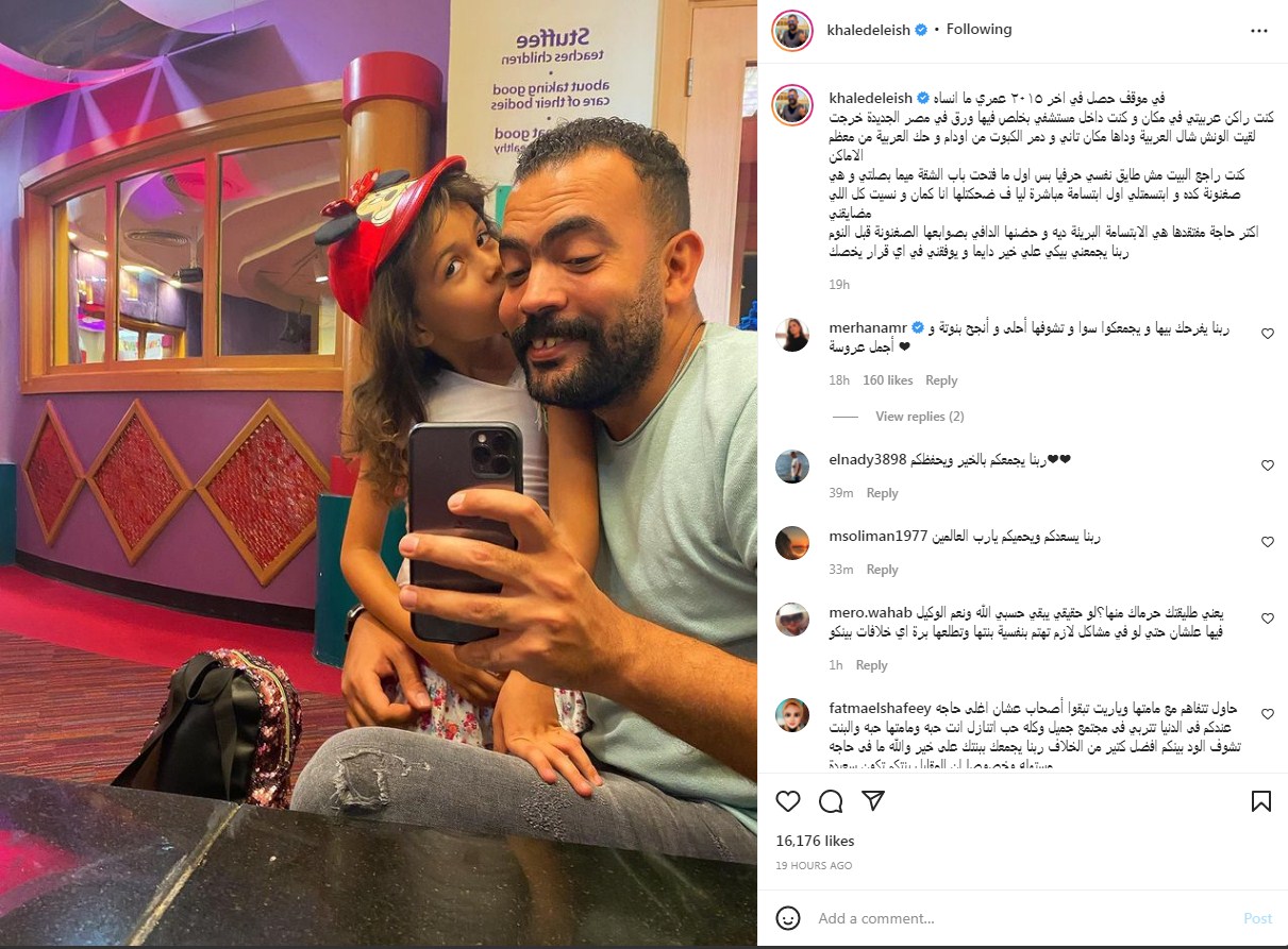وكتبت ميما الشامي، طليقة خالد عليش، عبر حسابها بإنستجرام "بعد الطلاق الرسمي اتفقنا على رؤية البنت، وكان بيشوفها بانتظام وبشهادة كل الناس، وبشهادة المدرسة، اللي بيني وبينها إيميلات أنه كان بياخدها من المدرسة، مش هتكلم عن الفترة ازاي كانت ضغط عصبي عليا وكان بيتم إهانتي ازاي وكنت بتحمل عشان مصلحة البنت والفترة من دة من شهر 3-2021، إلى شهر 11-2021، وفجأة وهو في عيد ميلاد البنت عرفت أن في قضية مرفوعة من شهر 12 وفي الوقت ده مكنش معايا اي محامي لأني تنازلت عن كل القضايا مقابل قضية جنائية كان رفعها على أم بنته واللي كنت زوجته في الوقت ده".
