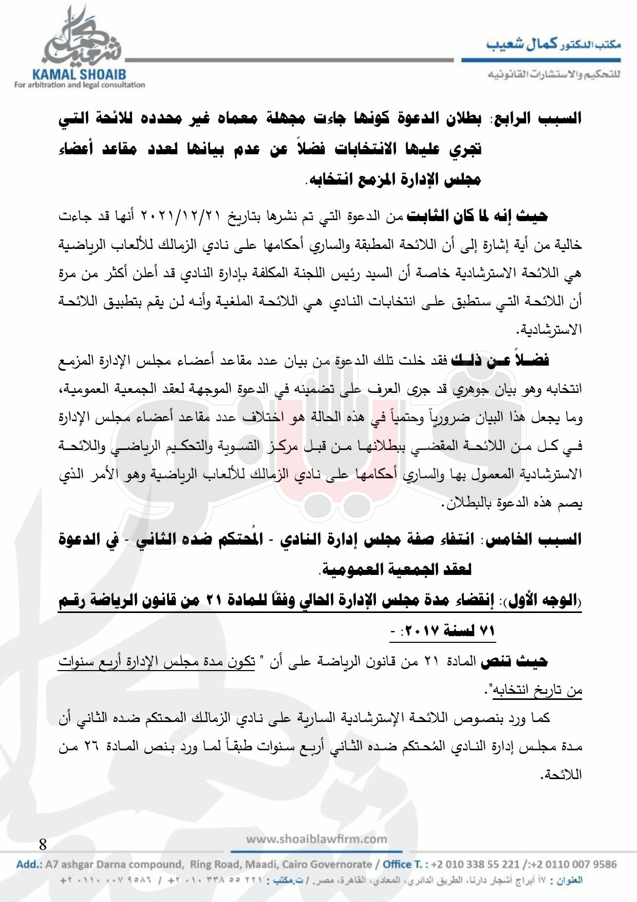 وبرر عباس طعنه علي انعقاد عمومية الزمالك لما شابها من بطلان لمخالفتها للقانون واللوائح وعدم تحديدها يوما محددا لانعقاد الجمعية العمومية وما يترتب علي ذلك من آثار.