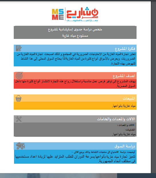 وتستعرض "فيتو" كافة التفاصيل المتعلقة بدراسة الجدوى الاسترشادية لمشروع مستودع مياه غازية والتي أعدها جهاز تنمية المشروعات الصغيرة والمتوسطة؛ حيث يهدف المشروع إلى توفير فرص عمل مناسبة واستغلال رواج هذه التجارة لانتشار كثير منها داخل السوق المصرية.