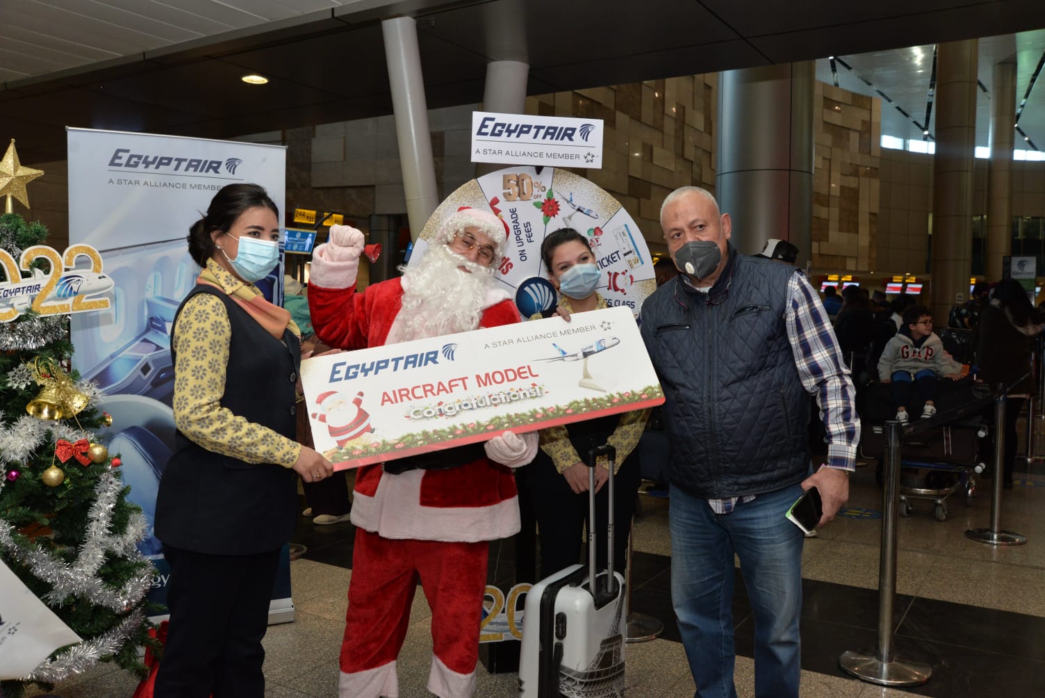 مصر للطيران تحتفل بالكريسماس مع المسافرين بالهدايا | صور