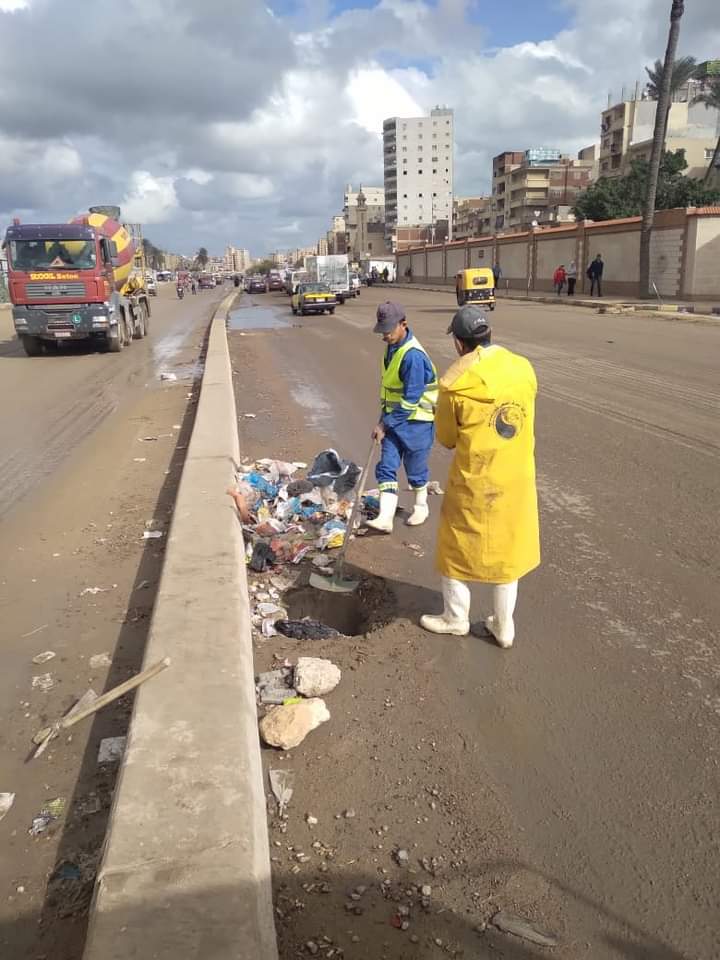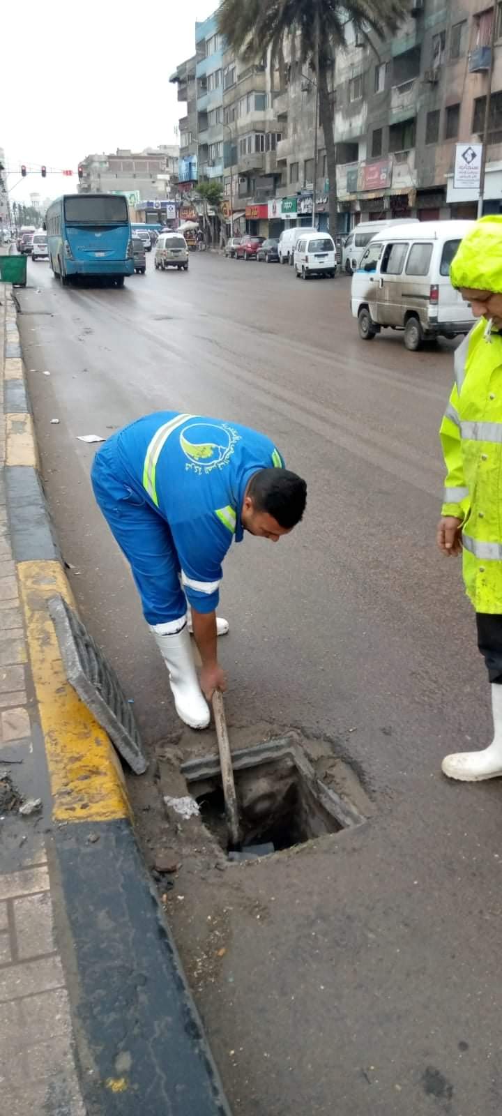 وفي حي المنتزه ثان تابع اللواء حسن الجمال ميدانيا تمركزات رجال الصرف الصحي والحماية المدنية، للتأكد من التعامل الفوري مع تراكم مياه الأمطار.