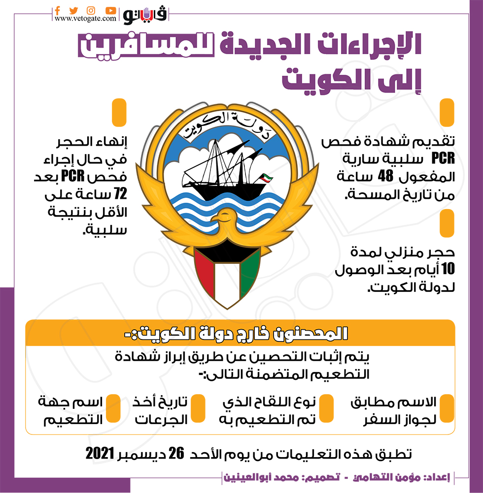 الإجراءات الجديدة للمسافرين إلى الكويت|إنفوجراف الجمعة 24/ديسمبر/2021 - 06:35 م 12/24/2021 6:35:11 PM رحلات مصر للطيران مؤمن التهامي شارك طباعة 18 حجم الخط شارك طباعة دولة الكويت الكويت فحص PCR فيروس كورونا لقاح PCR