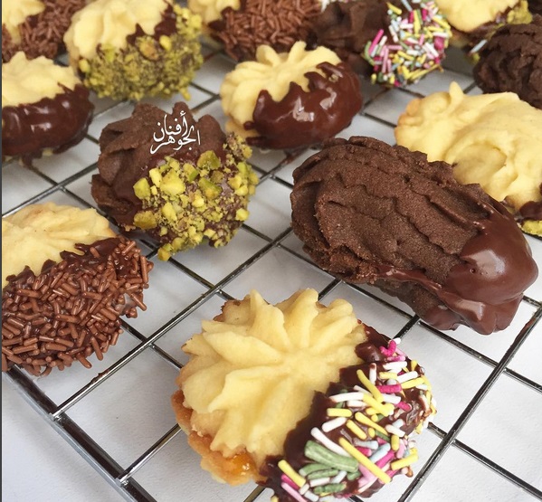 - وندخل الصواني الفرن على درجة حرارة 180 لمدة 10 دقائق، ويكون لونه فاتحا.