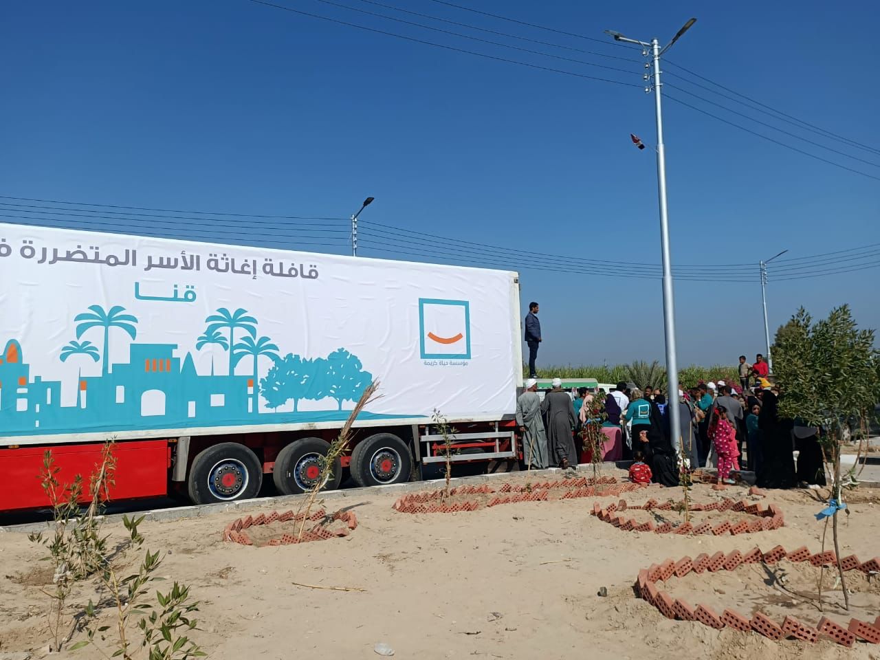 حيث توجهت القوافل مساء أمس الخميس إلي محافظة قنا وعلي الفور بدأت فرق العمل الميداني بالمؤسسة جهودها علي الأرض لتوزيع ٥٠٠٠ كرتونة مواد غذائية في محافظة قنا موزعة علي مختلف قري مركز الوقف بالمحافظة، حيث تم توزيع ٢٠٠٠ كرتونة بقرية المراشدة، كما تم تخصيص ١٢٠٠ كرتونة مواد غذائية لقرية الوقف، وتوزيع ألف كرتونة مواد غذائية لقرية قلمينا، كما تم تخصيص عدد من الكراتين لأهالي قري العبل والحمودي بمحافظة قنا.