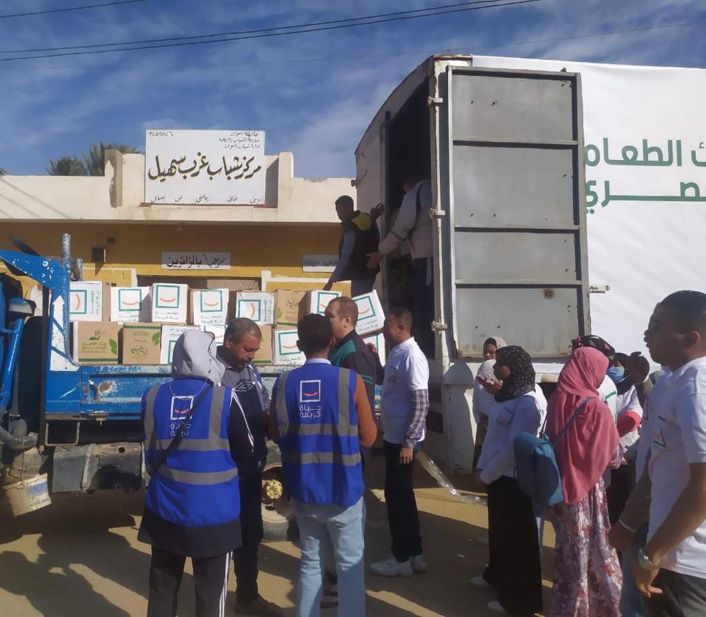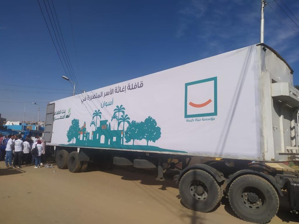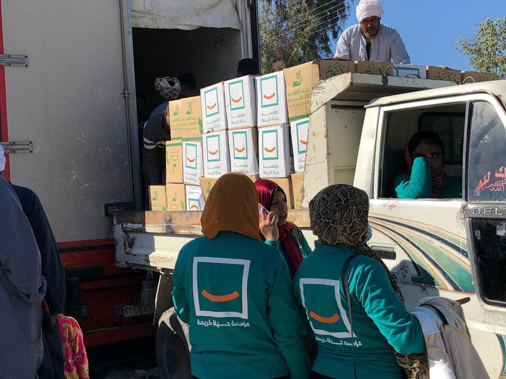 انطلقت قوافل مؤسسة حياة كريمة المُحملة بالمواد الغذائية الأساسية علي المواطنين في محافظات الصعيد وذلك بالتعاون مع بنك الطعام المصرى لتوزيع ٧ الآف كرتونة مواد غذائية أساسية علي أهالي محافظتي قنا وأسوان.
