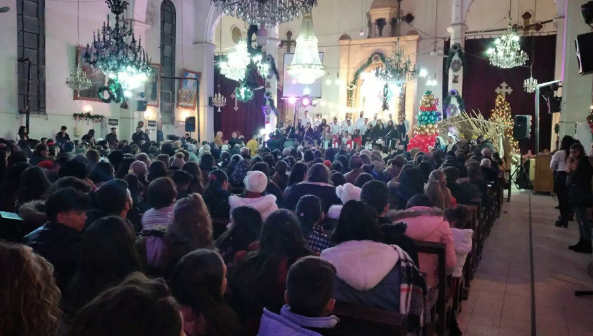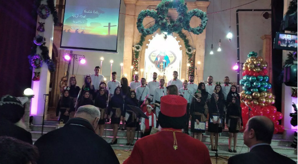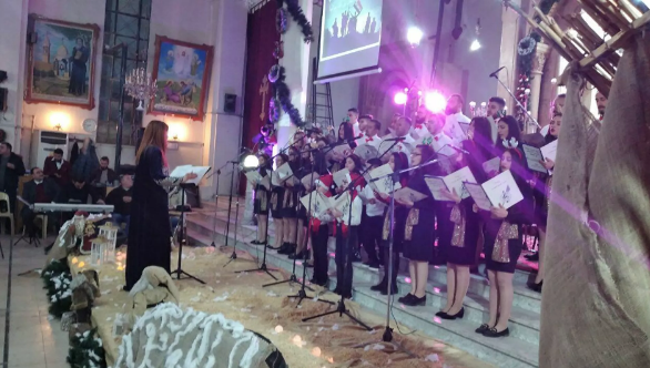 في هذه البقعة الحزينة من الأراضي السورية، حيث تتقابل جيوش محتلة تنهب ثرواتها وتتفنن في محاولات تفتيتها، وأخرى حليفة تحاول لملمة جراح الجغرافية وإنقاذها من براثن التشظي، أقامت جوقة الكنيسة ريسيتالا غنائي بمناسبة عيد الميلاد تضمن ترانيم ميلادية وأغاني وطنية تعبر عن الحب والسلام والتمسك بالوطن.
