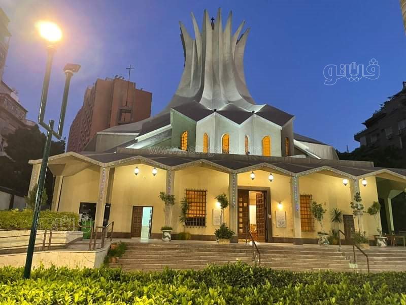 أشجار الكريسماس وأضواء الميلاد تكسو الكاتدرائية الأسقفية قبل قداس العيد
