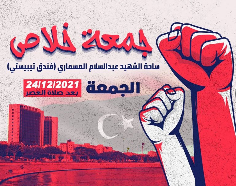 وبدء توافد المتظاهرين على الميادين الرئيسية في المدن الليبية، عصر الجمعة، تحت شعار "جمعة الخلاص" التي توافق 24 ديسمبر.