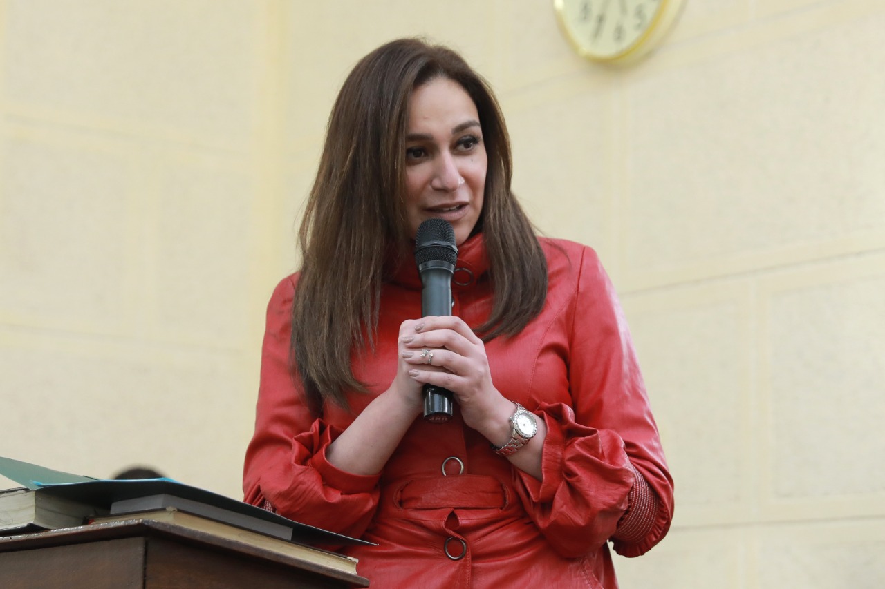 معربة عن سعادتها بالتواجد للاحتفال بمرور تسعين عامًا على إنشاء الكنيسة الإنجيلية واليوبيل الفضى لخدمة القس / أمجد أيوب - رئيس مجمع مشيخة الدلتا وراعي الكنيسة الإنجيلية بدمنهور، تلك الكنيسة العريقة التى تقدم خدمات رائعة للمسيحيين والمسلمين.