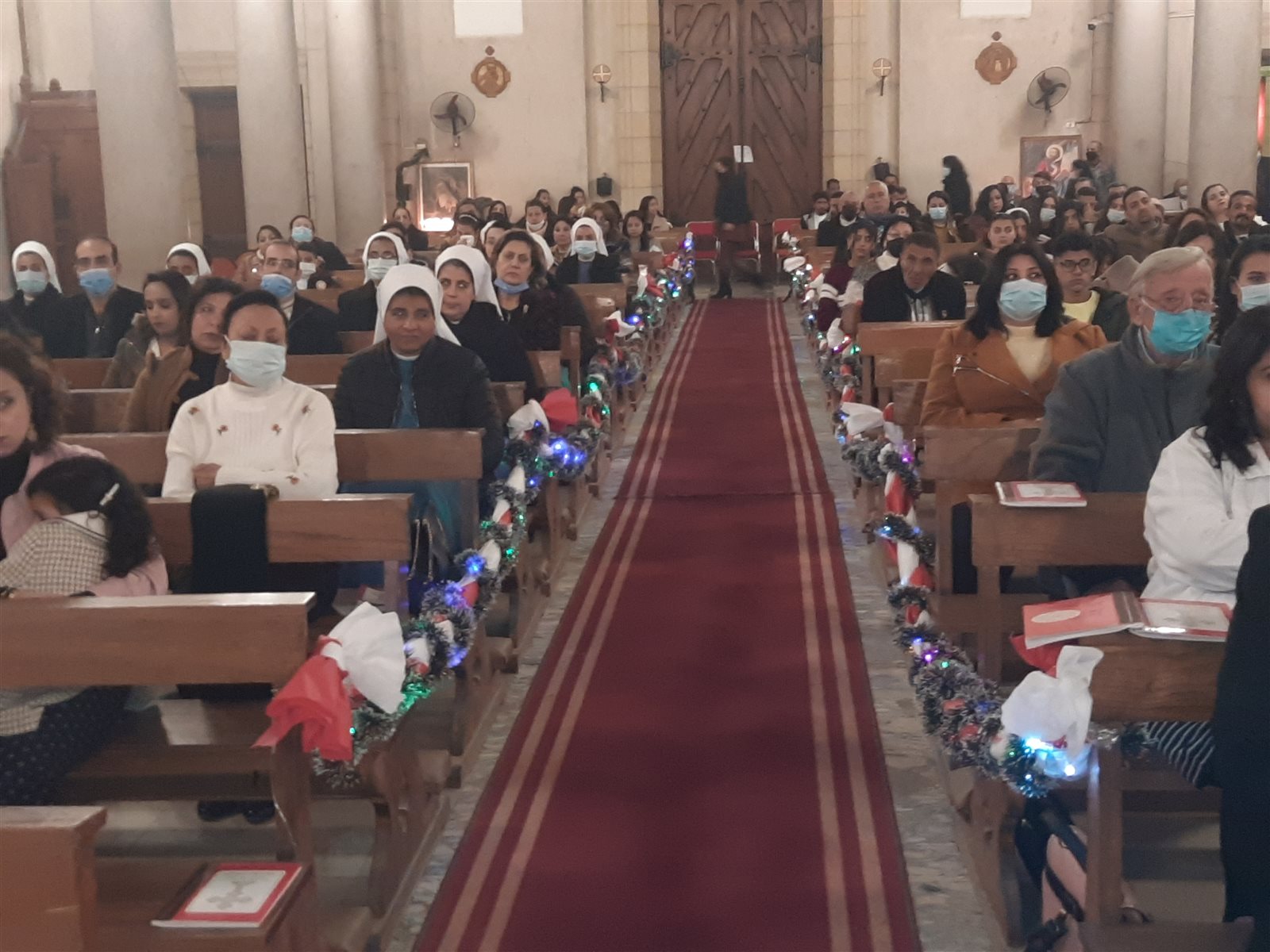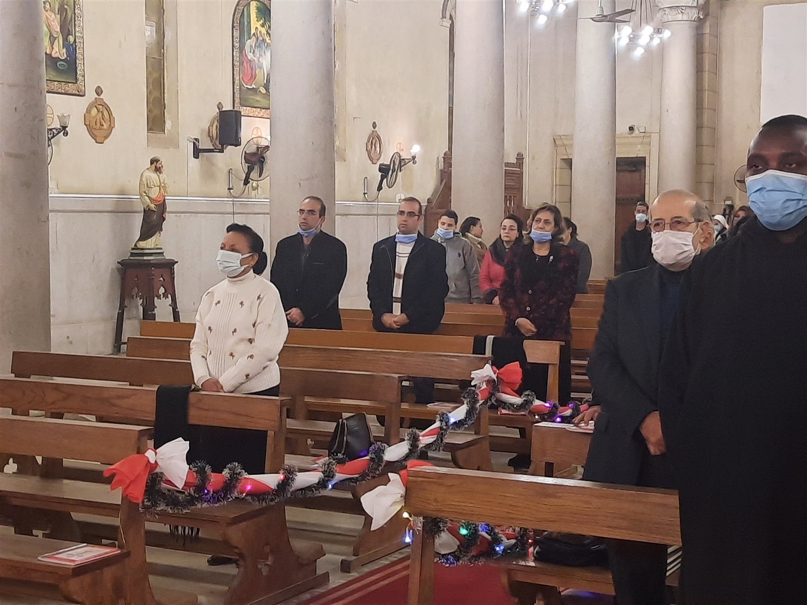 بدأت بدق أجراس الكاتدرائية احتفالًا بعيد الميلاد المجيد، كما التزم المصلون من شعب الكنيسة بكافة الإجراءات الوقائية والاحترازية، مع الالتزام بمسافات التباعد الاجتماعي وارتداء الكمامات.