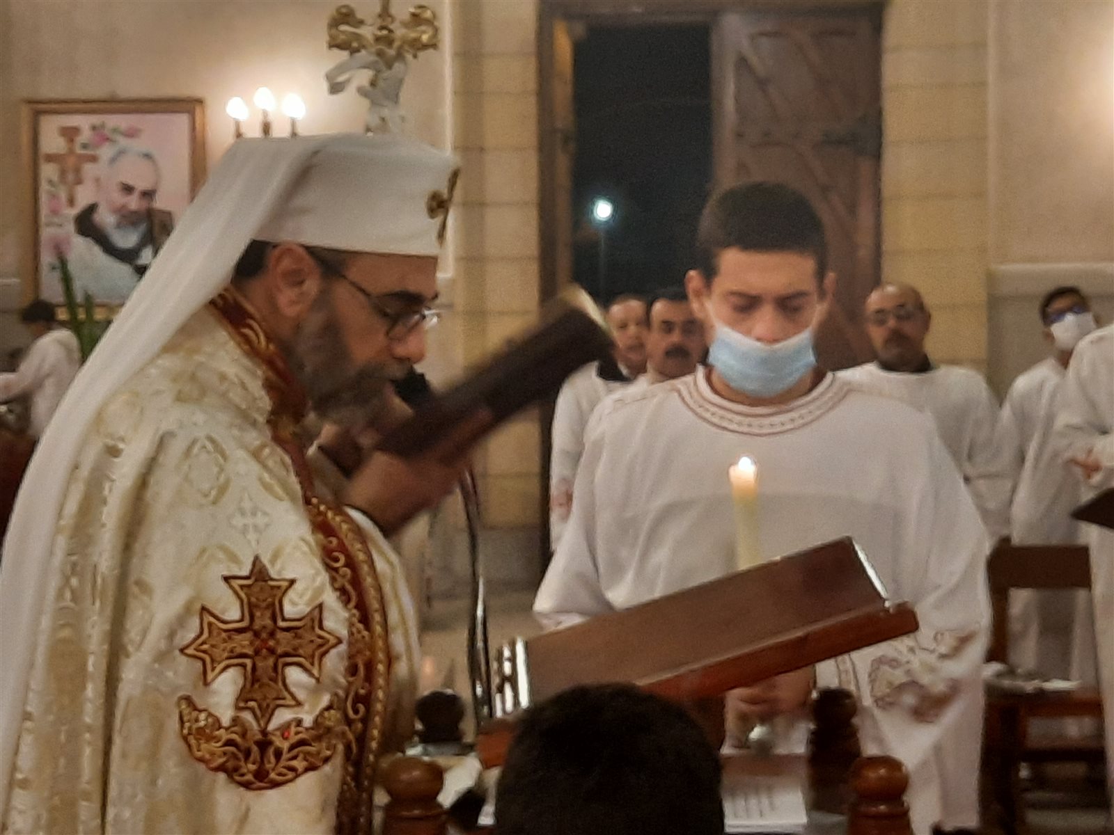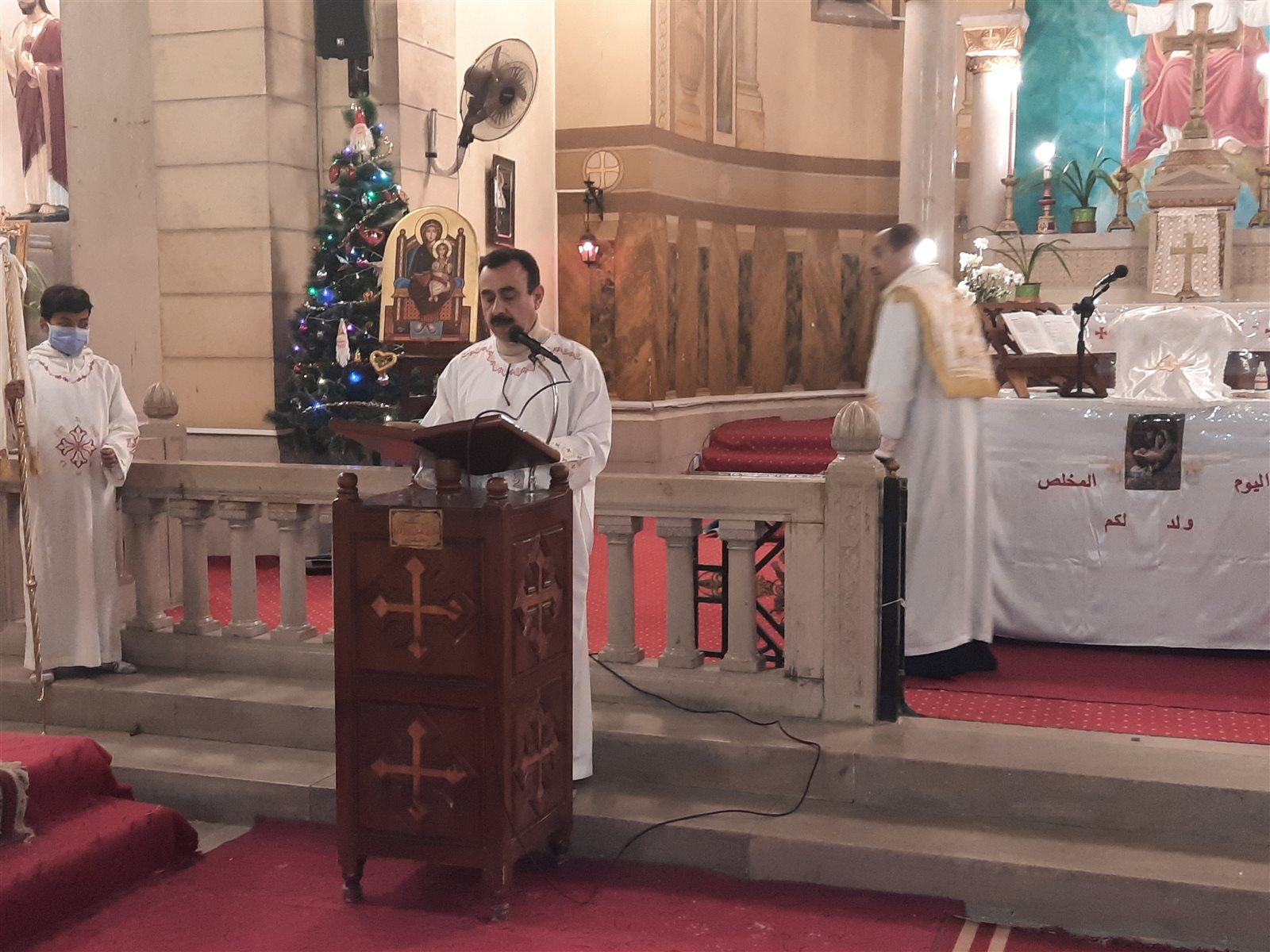 وترأس صلاة قداس عيد الميلاد للأقباط الكاثوليك نيافة المطران الأنبا دانيال لطفي ولفيف من الآباء الكهنة، وهم القمص أغاثون خير وكيل المطرانية، والأب يوسف رمزي، والأب جوفاني قاصد، رعاة الكاتدرائية، وسط إجراءات أمنية واحترازية مشددة حيث فرضت قوات الأمن أطواقا أمنية حول الكنائس التي تقام بها الصلوات.