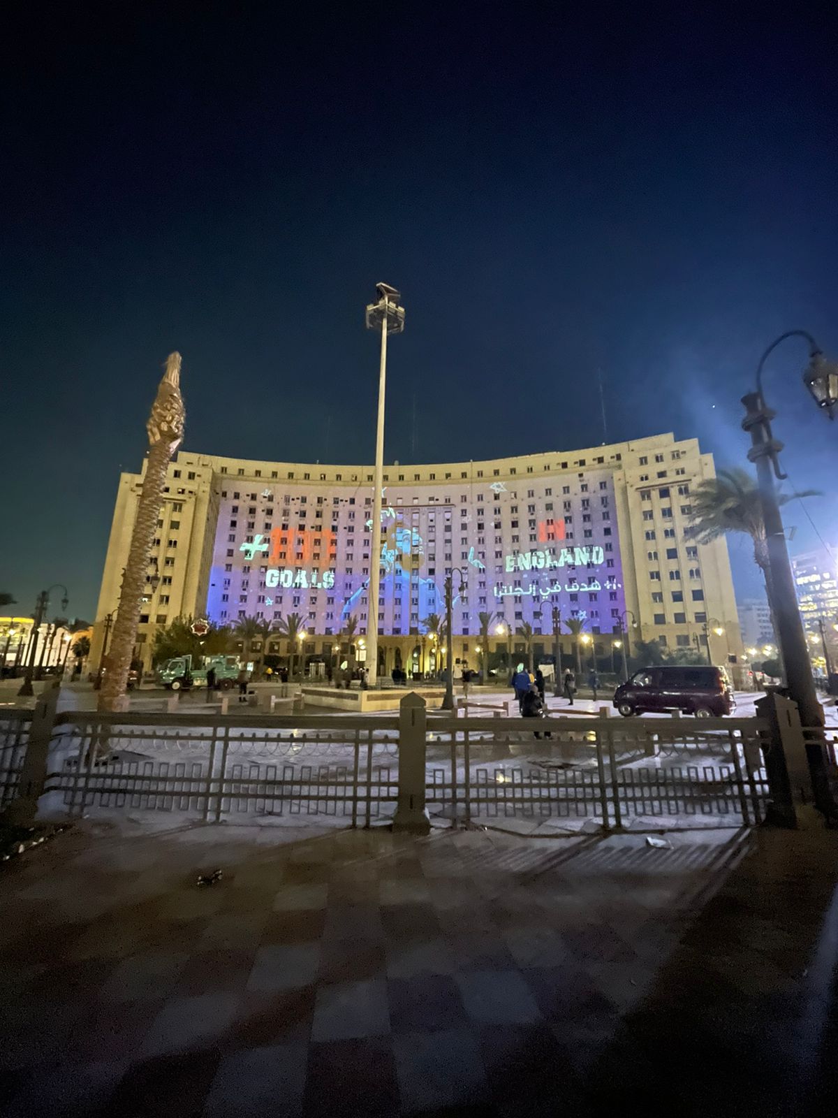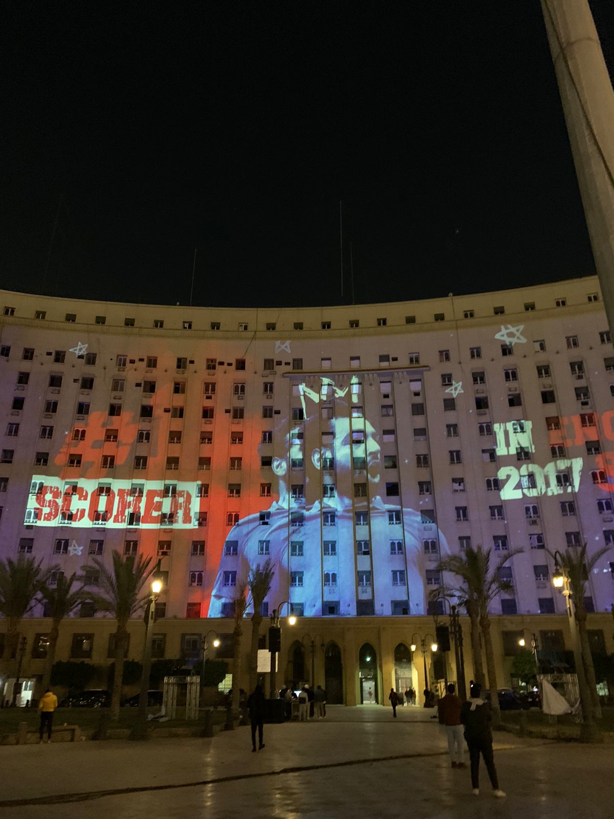 لأول مرة تتزين واجهة مجمع التحرير بإنجازات نجم منتخب مصر ونادي ليفربول الإنجليزي اللاعب العالمي محمد صلاح باستخدام تقنية الـ3D Mapping وإضاءة الليزر.