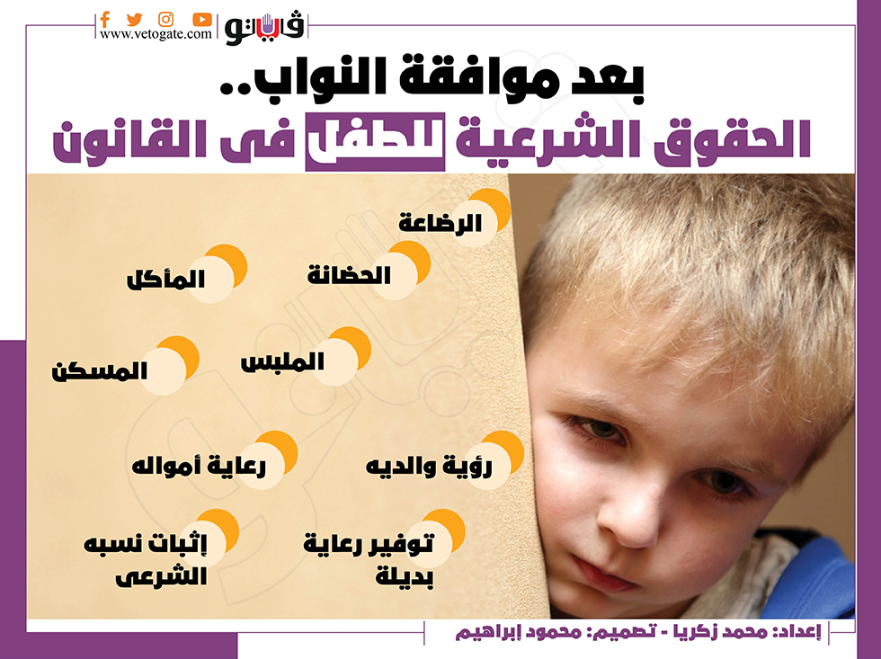 بعد موافقة النواب.. الحقوق الشرعية للطفل فى القانون | إنفوجراف السبت 25/ديسمبر/2021 - 02:20 م 12/25/2021 2:20:50 PM الطفل محمد زكريا شارك طباعة 18 حجم الخط شارك طباعة قانون الطفل مجلس النواب الماكل الرضاعة الحضانة