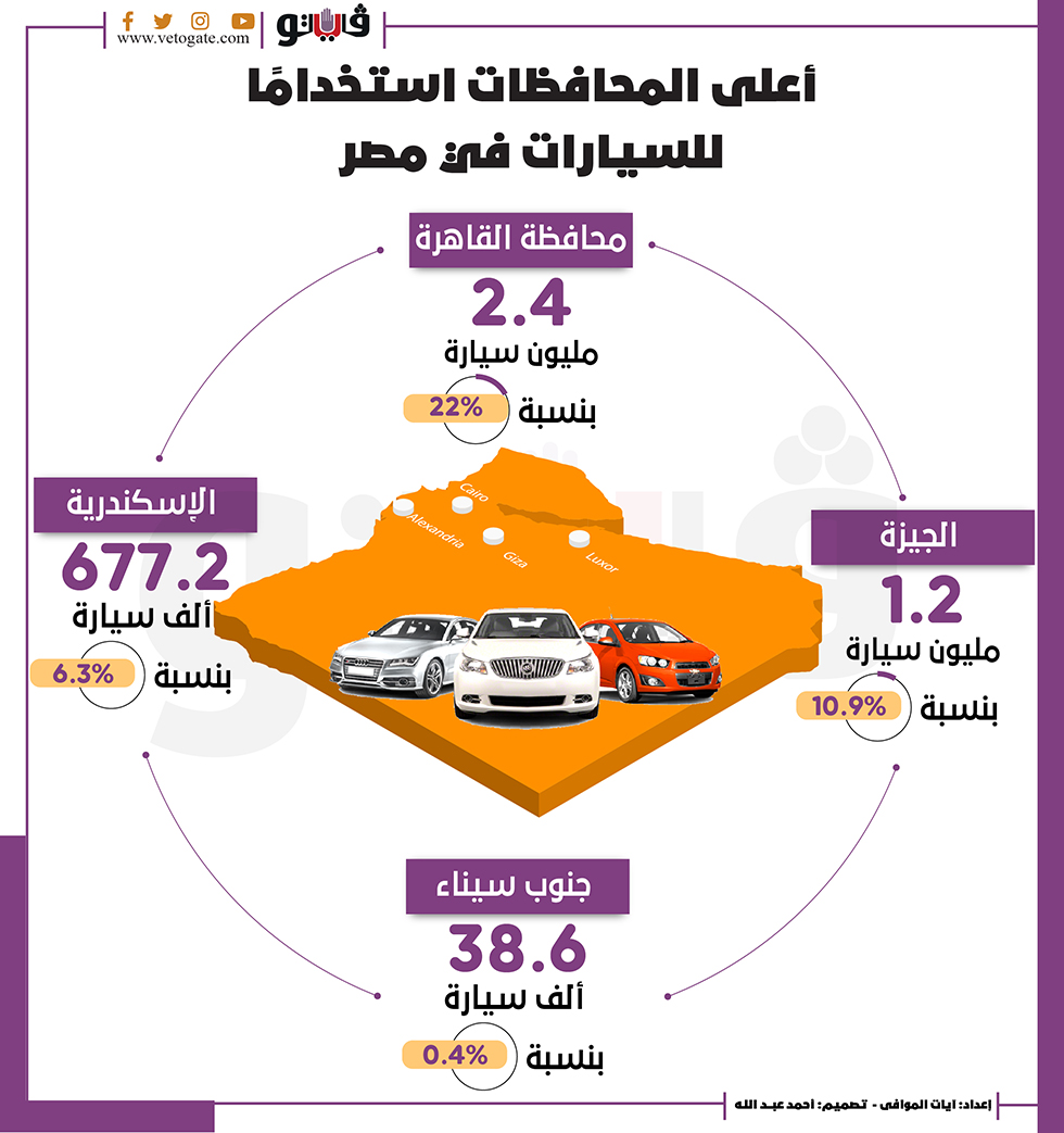 أعلى المحافظات استخدامًا للسيارات في مصر |انفوجراف