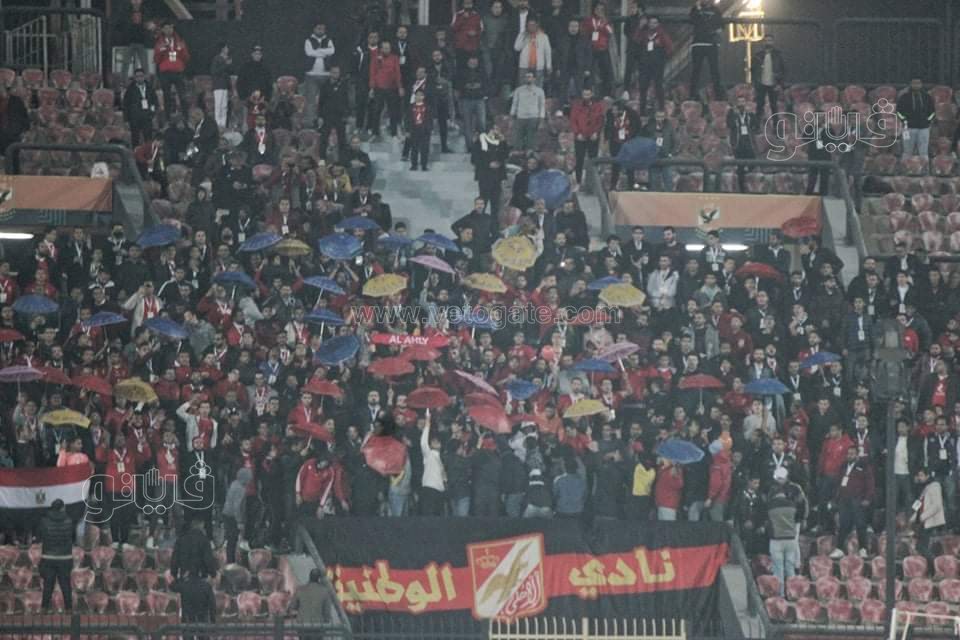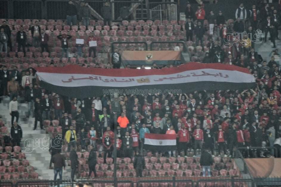 ورفعت جماهير الأهلي أعلام مصر والشماسي في مدرجات ملعب السلام احتفالا بفوز الفريق بكأس السوبر الأفريقي قبل أيام على حساب الرجاء البيضاوي المغربي بركلات الترجيح بعد انتهاء الوقت الأصلي بالتعادل 1/1.
