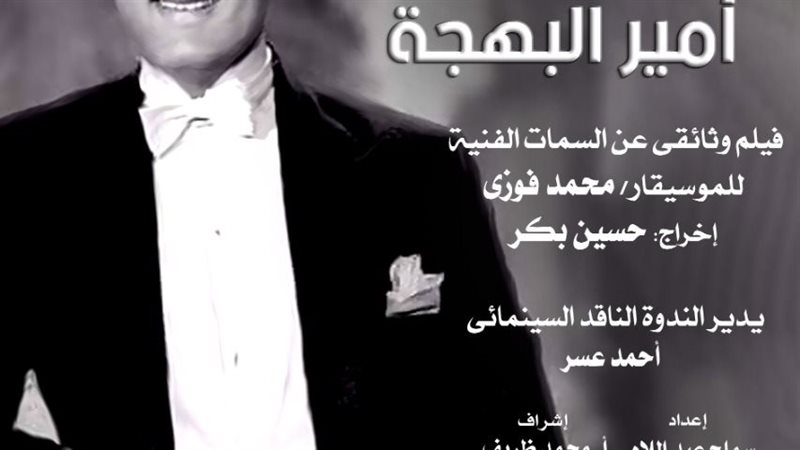 حيث يتم عرض الفيلم الوثائقي “أمير البهجة” عن السمات الفنية للفنان الكبير محمد فوزي.