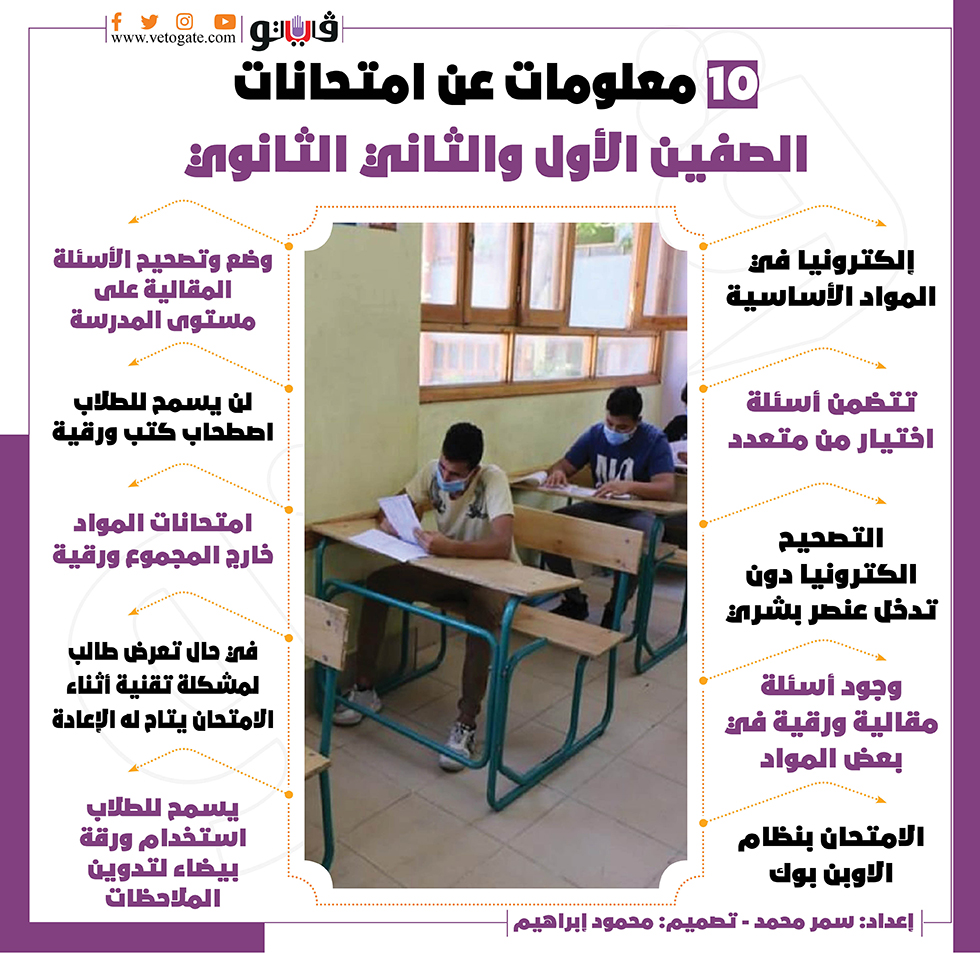 10 معلومات عن امتحانات الصفين الأول والثاني الثانوي| انفوجراف الثلاثاء 28/ديسمبر/2021 - 11:18 م 12/28/2021 11:18:10 PM 10 معلومات عن امتحانات الصفين الأول والثاني الثانوي سمر محمد شارك طباعة 18 حجم الخط شارك طباعة نظام الاوبن بوك امتحانات الصفين الأول والثانى الثانوى إمتحانات الفصل الدراسي الاول امتحانات الترم الأول