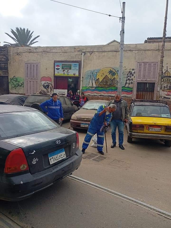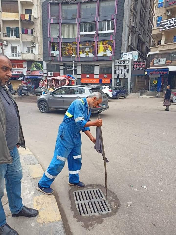تطهير المطابق والشنايش بحي الجمرك فى الإسكندرية استعدادًا للتقلبات الجوية