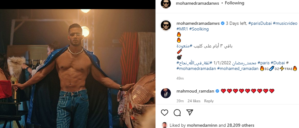 وكان الفنان محمد رمضان أحيا قبل أسابيع حفلا ضخما في العاصمة العراقية بغداد، وحقق الحفل نجاحًا كبيرًا وحضرته أعداد غفيرة من الجمهور العراقي.