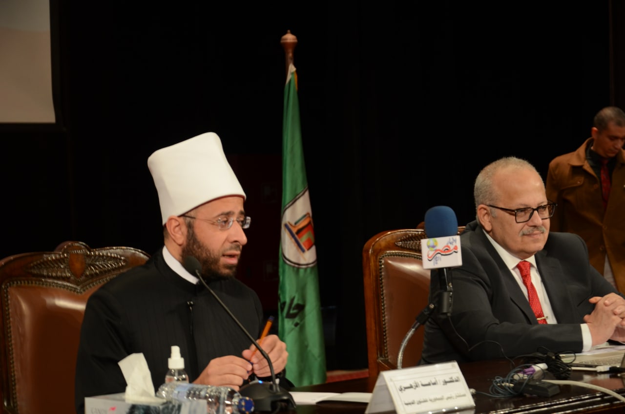 وقال الأزهري في بداية حديثه: إنه شرف كبير أن أكون ضيفا على هذه الجامعة العريقة وفي هذه القاعة الكبرى التي شهدت رموزًا وندوات وأحداثًا واحتفالات كثيرة فهي جزء أصيل من تاريخ الوطن.
